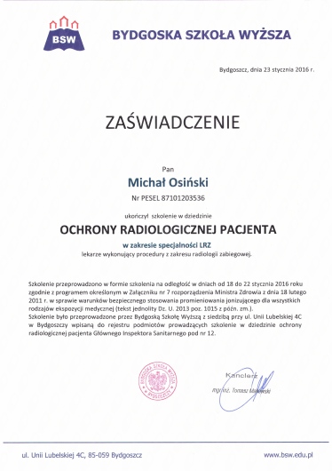 Gdzie Michał Osiński ma swój gabinet?Michał Osiński przyjmuje pod adresem: