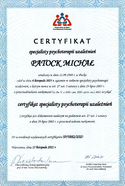 Specjalista psychoterapii uzależnień.