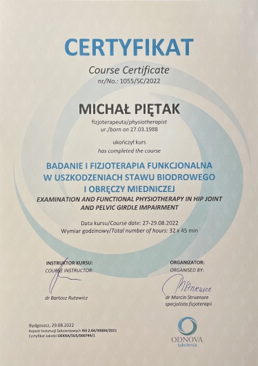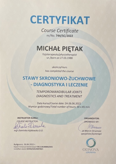 • Michał Piętak • konsultacja fizjoterapeutyczna (pierwsza wizyta) •