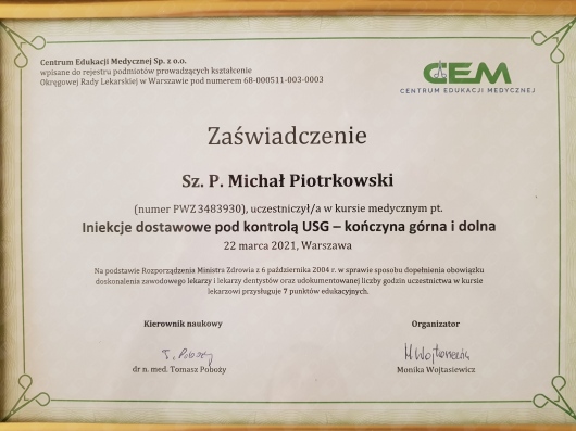 Jeśli ktoś obawia się zabiegu to będąc pod opieką doktora Piotrkowskiego, może być spokojnym w 100%. Ja jestem bardzo zadowolona i polecam!• Centrum Medyczne Bimed • konsultacja ortopedyczna + USG •