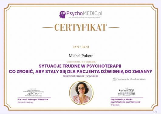 Jestem absolwentem Wydziału Lekarskiego Śląskiego Uniwersytetu Medycznego, na co dzień pracuję w Szpitalu Klinicznym im. dr J. Babińskiego w Krakowie. Doświadczenie zdobywałem min. na Oddziale Dziennym w Nowej Hucie, Oddziale Ogólnopsychiatrycznym oraz Izbie Przyjęć Szpitala Babińskiego, Oddziale dla Uzależnionych od Substancji Psychoaktywnych ze Współistniejącymi Zaburzeniami Psychicznymi czy na Oddziale Psychiatrycznym Szpitala Rydygiera. Na bieżąco również poszerzam swoją wiedzę poprzez udział w konferencjach naukowych oraz szkoleniach.
