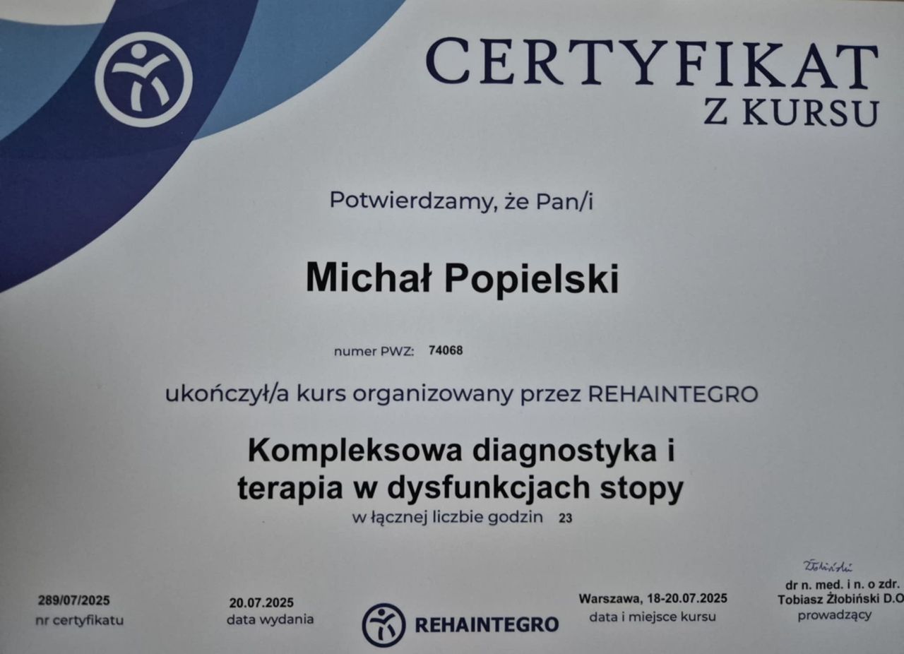 Bardzo rzetelna informacja o stosowanych ćwiczeniach. Wizyta w komfortowym gabinecie. Polecam usługi Pana Michała. Na pewno wrócę.