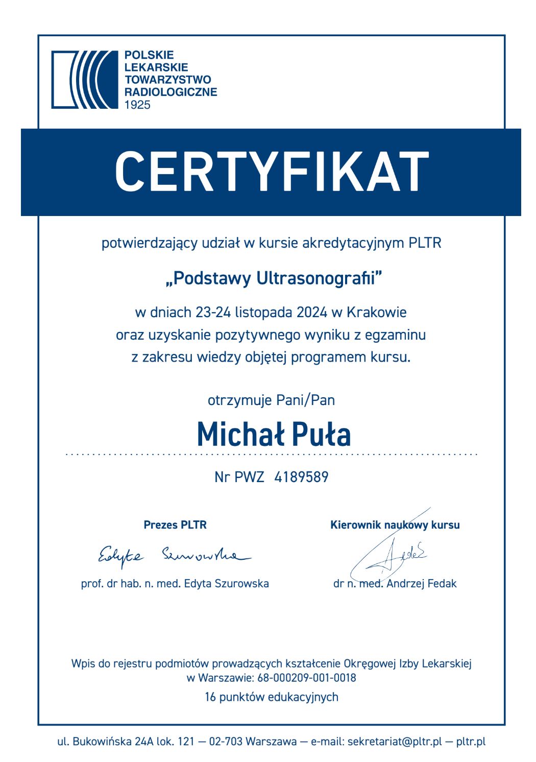 Jestem lekarzem w trakcie specjalizacji z radiologii i diagnostyki obrazowej w Uniwersyteckim Szpitalu Klinicznym we Wrocławiu oraz absolwentem Uniwersytetu Medycznego im. Piastów Śląskich we Wrocławiu.