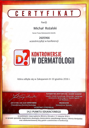 Jaki jest zakres porad oferowanych przez Michał Rożalski?Michał Rożalski to dermatolog, lekarz wykonujący zabiegi medycyny estetycznej. Na podstawie swojego doświadczenia i wykształcenia Michał Rożalski oferuje usługi takie jak: konsultacja dermatologiczna.