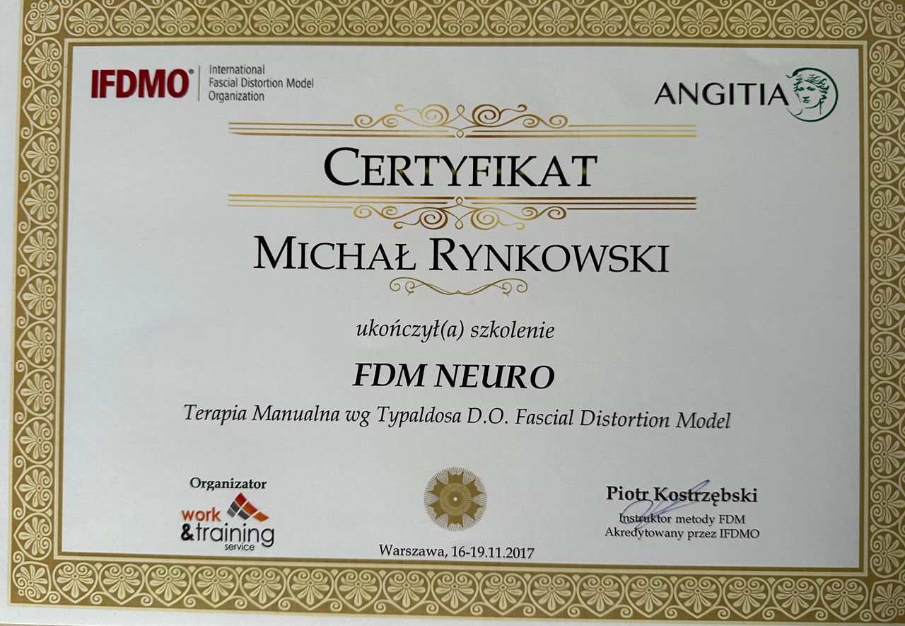 -FDM (Facial Distortion Model) terapia manualna charakteryzująca się wysoka skutecznością w leczeniu podostrych i przewlekłych stanów bólowych. Bazuje na szczegółowym wywiadzie i badaniu palpacyjnym.