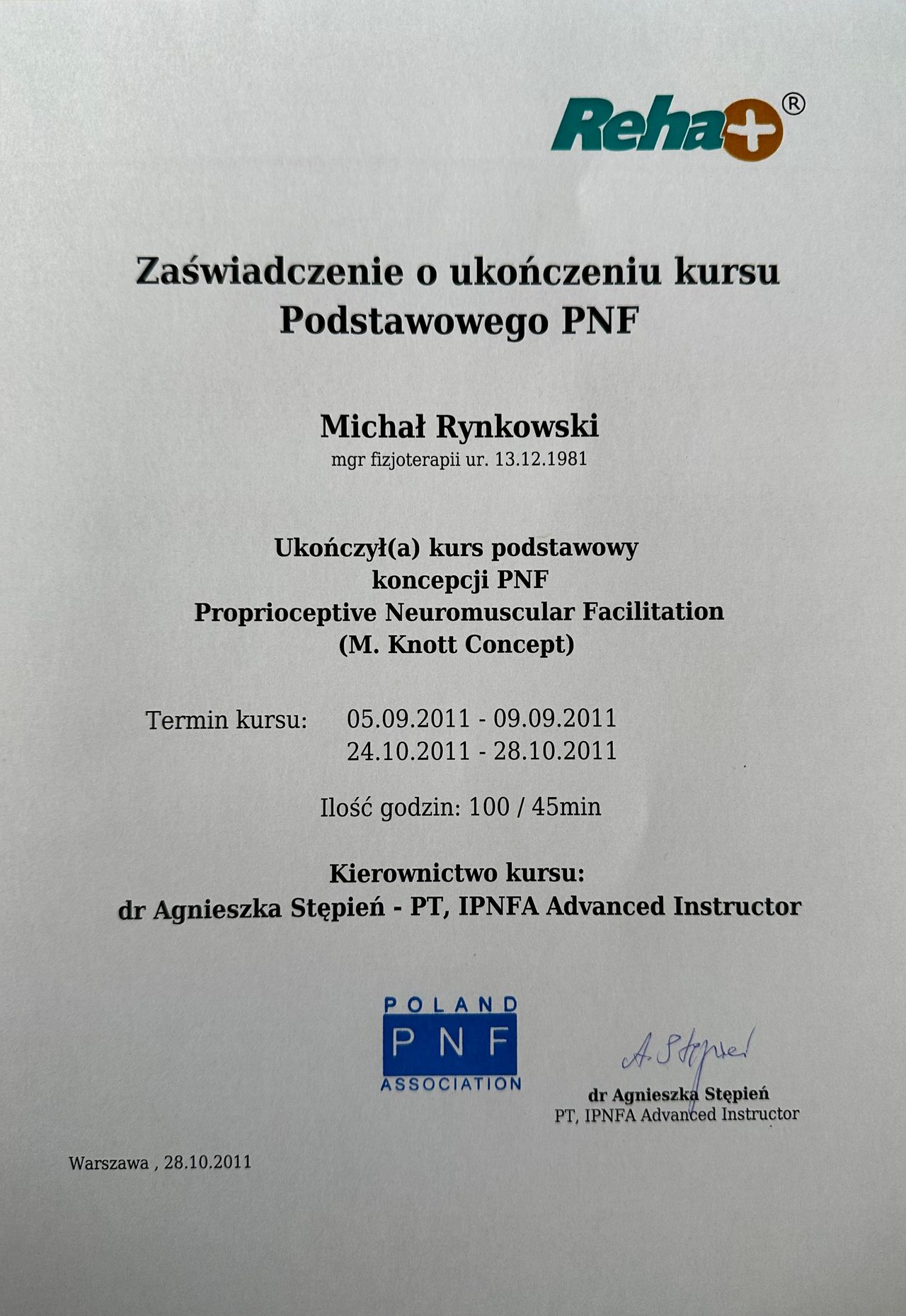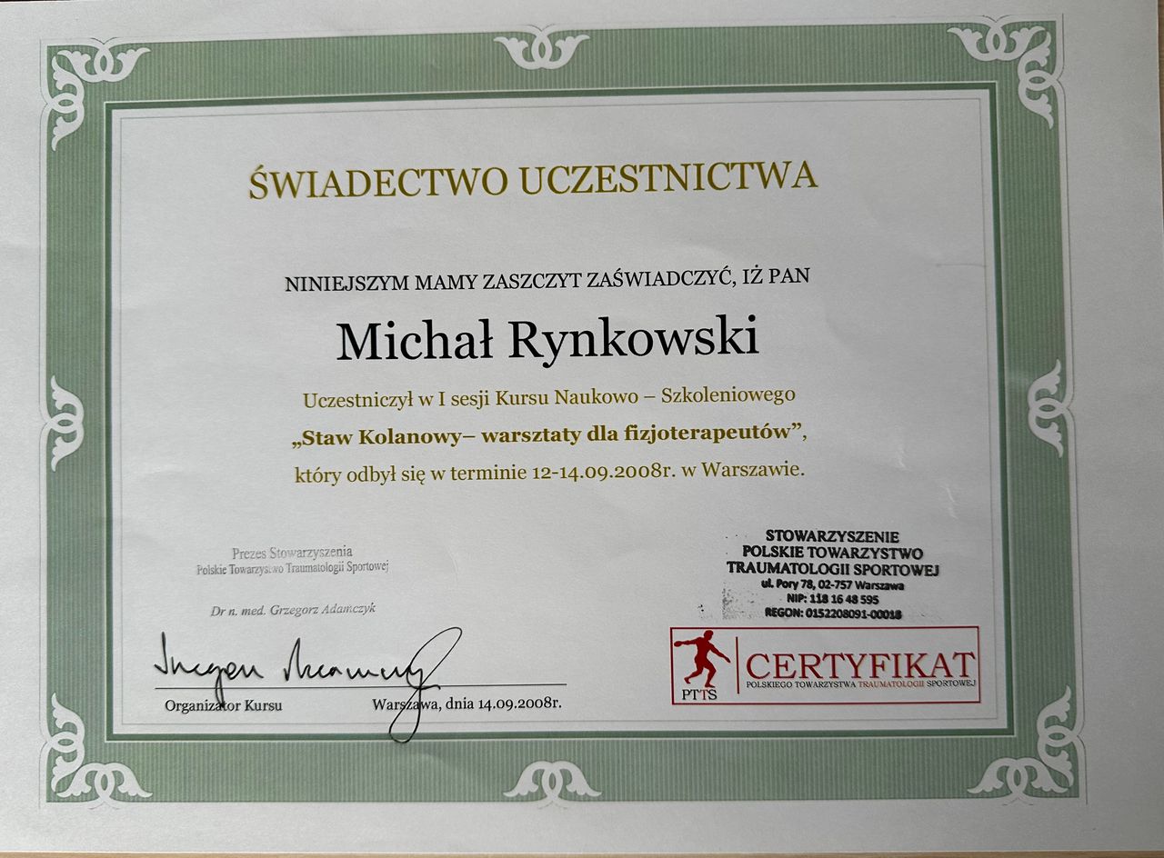 - Kurs z zakresu dysfunkcji stawu kolanowego w Klinice Carolina Medical Center (To jeden z najnowocześniejszych prywatnych ośrodków leczenia ortopedycznego w Polsce),