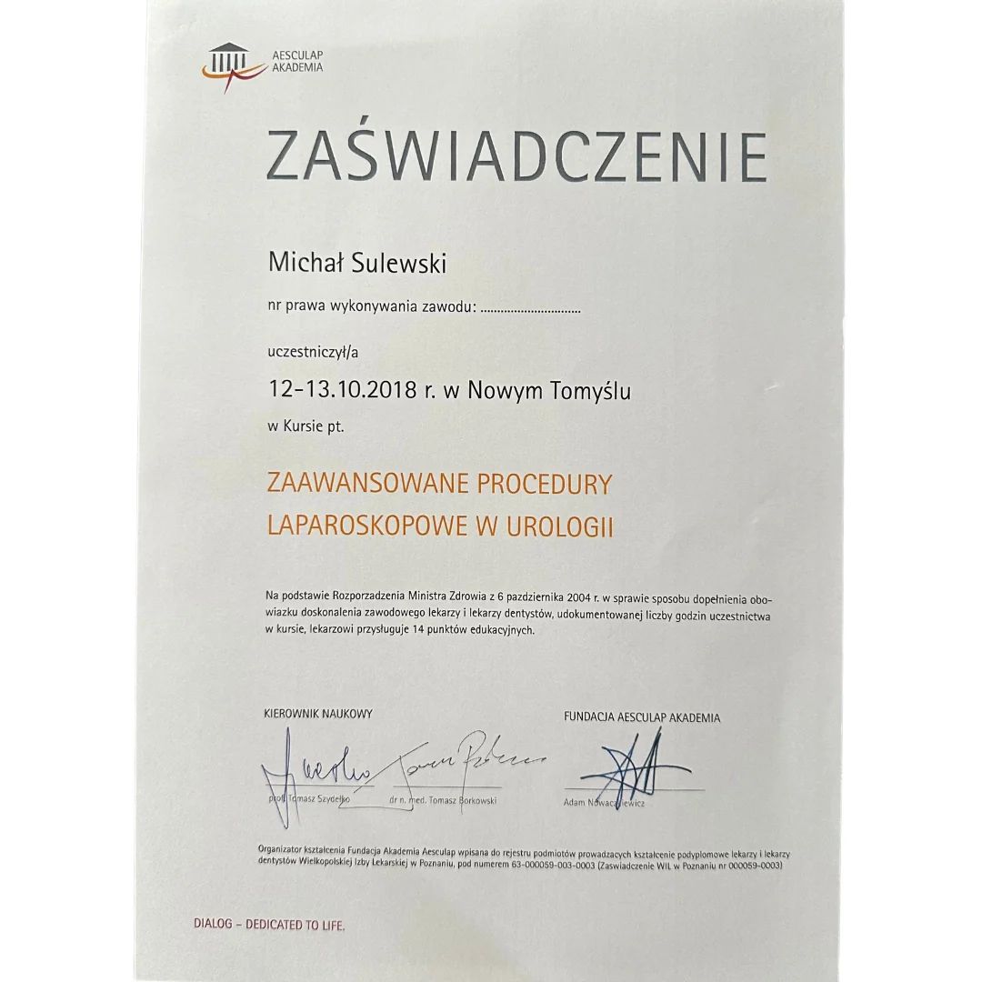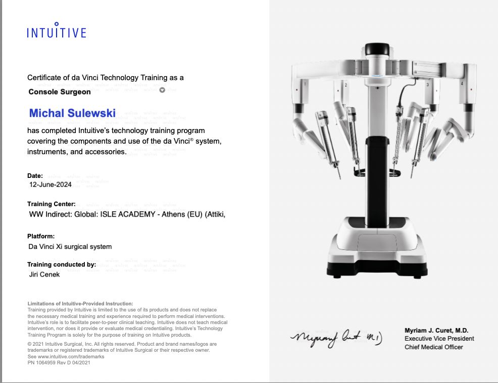 Dr. Michał Sulewski, FEBU – Specjalista Urologii, Certyfikowany Operator Robota da Vinci