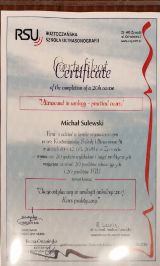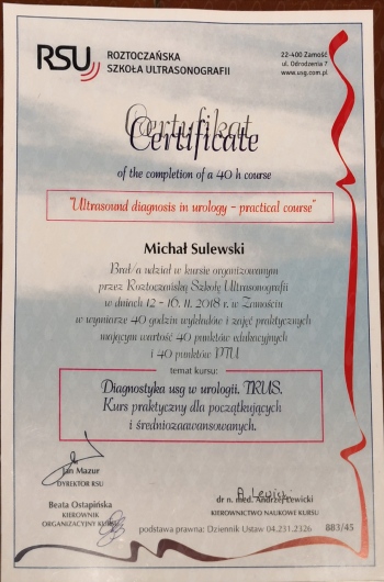 Jako członek Polskiego Towarzystwa Urologicznego oraz Europejskiego Towarzystwa Urologicznego nieustannie poszerzam swoją wiedzę, uczestnicząc w międzynarodowych szkoleniach, m.in.
