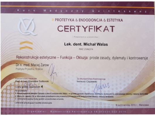 Jaki jest zakres porad oferowanych przez Michał Walas?Michał Walas to stomatolog, chirurg stomatologiczny, protetyk stomatologiczny. Na podstawie swojego doświadczenia i wykształcenia Michał Walas oferuje usługi takie jak: konsultacja stomatologiczna (pierwsza wizyta), wypełnienie kompozytowe, ekstrakcja zęba, leczenie kanałowe pod mikroskopem, pakiet higienizacyjny, Implant z koroną protetyczną, mosty, korony porcelanowe, korona metalowo-porcelanowa, korona na tlenku cyrkonu.