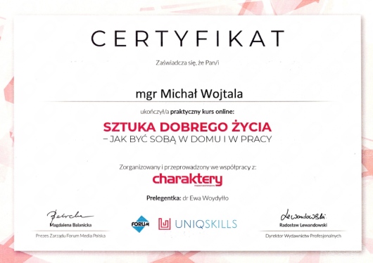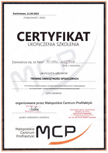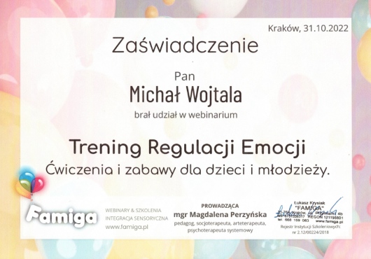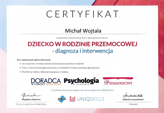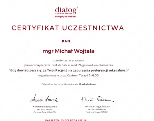 Pan Michał Wojtala to wyjątkowy psycholog dziecięcy, którego z całego serca polecam. Trafiliśmy do niego z synkiem przed rozpoczęciem pierwszej klasy. W przedszkolu od początku zmagał się z łatką „niegrzecznego”, a dopiero Pan Michał odkrył, że stoi za tym realne zaburzenie utrudniające funkcjonowanie w grupie. Dzięki trafnej diagnozie, wdrożeniu leczenia i terapii mój syn odzyskał wiarę w siebie, świetnie radzi sobie w szkole, ma dobre oceny i z pasją trenuje judo. Uwielbiał spotkania z Panem Michałem, który zawsze poświęcał mu tyle czasu, ile potrzebował, bez pośpiechu. Po kilku miesiącach terapii dołączyła też moja nastoletnia córka – już po pierwszym spotkaniu była zachwycona. Pan Michał ma niezwykłe podejście zarówno do młodszych dzieci, jak i nastolatków. Jesteśmy wdzięczni z mężem,że w Elblągu mamy tak oddanego swojej pracy specjalistę. Warto poczekać na wizytę, bo efekty są bezcenne!