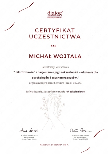 Syn wyszedł z gabinetu uradowany. Stwierdził, że to jest pierwszy terapeuta z którym może szczerze porozmawiać o wszystkim. Kontynuujemy naszą przygodę z Panem Michałem.