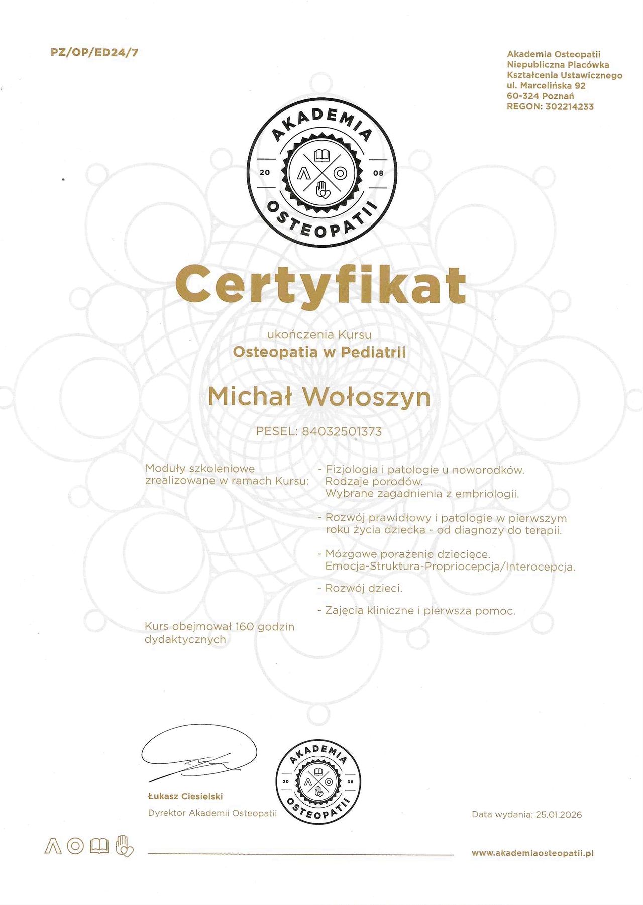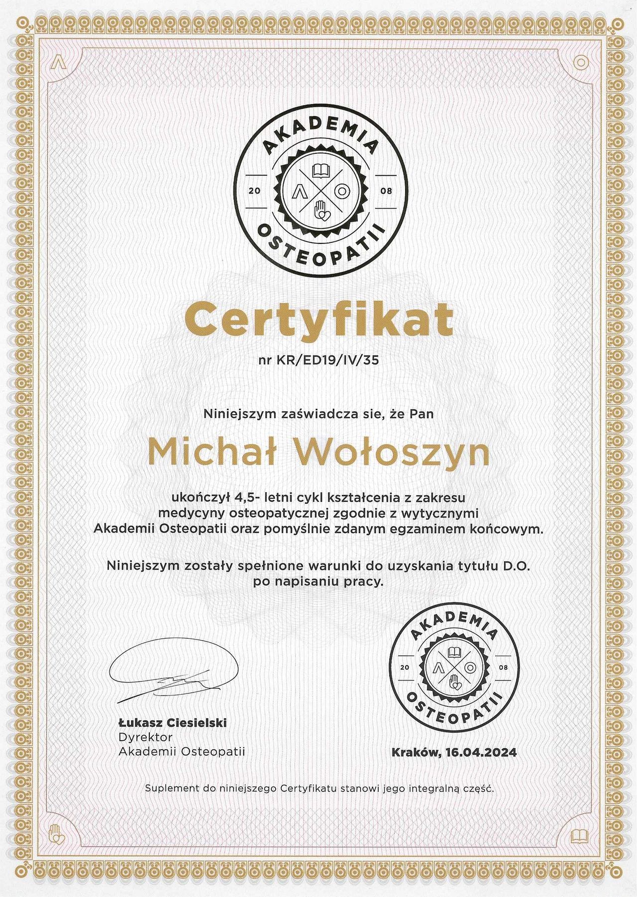 Ukończyłem studia osteopatyczne w Krakowskiej Akademii Osteopatii. Pracuję z pacjentami bólowymi jak również po zabiegach operacyjnych i wszelkich kontuzjach/urazach. Prowadzę terapię z zakresu pediatrii (noworodki oraz dzieci przedszkolne).