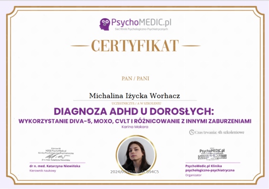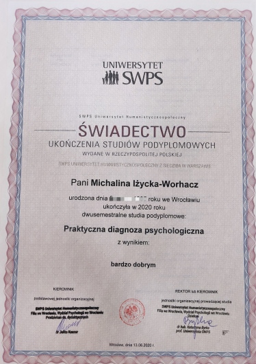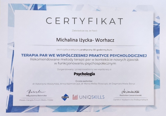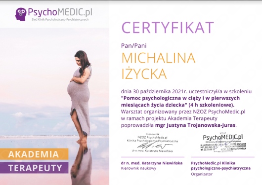 Michalina jest najlepszą specjalistką psychologii, jaką kiedykolwiek poznałam - spotykamy się od ponad roku i z ręką na sercu mogę powiedzieć, że gdyby nie jej wsparcie, nie udźwignęłabym swojej sytuacji życiowej i nie byłabym teraz w miejscu, w którym jestem - mimo trudności czuję, że idzie w dobrą stronę.