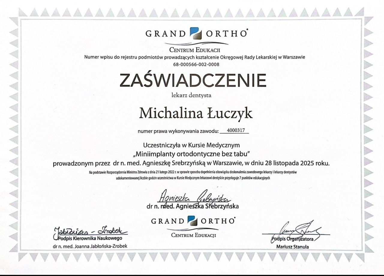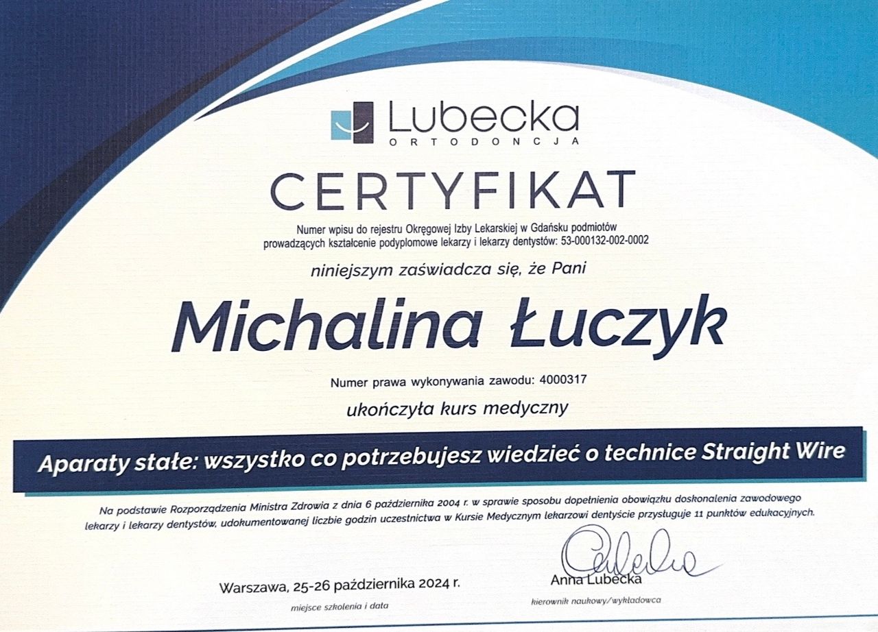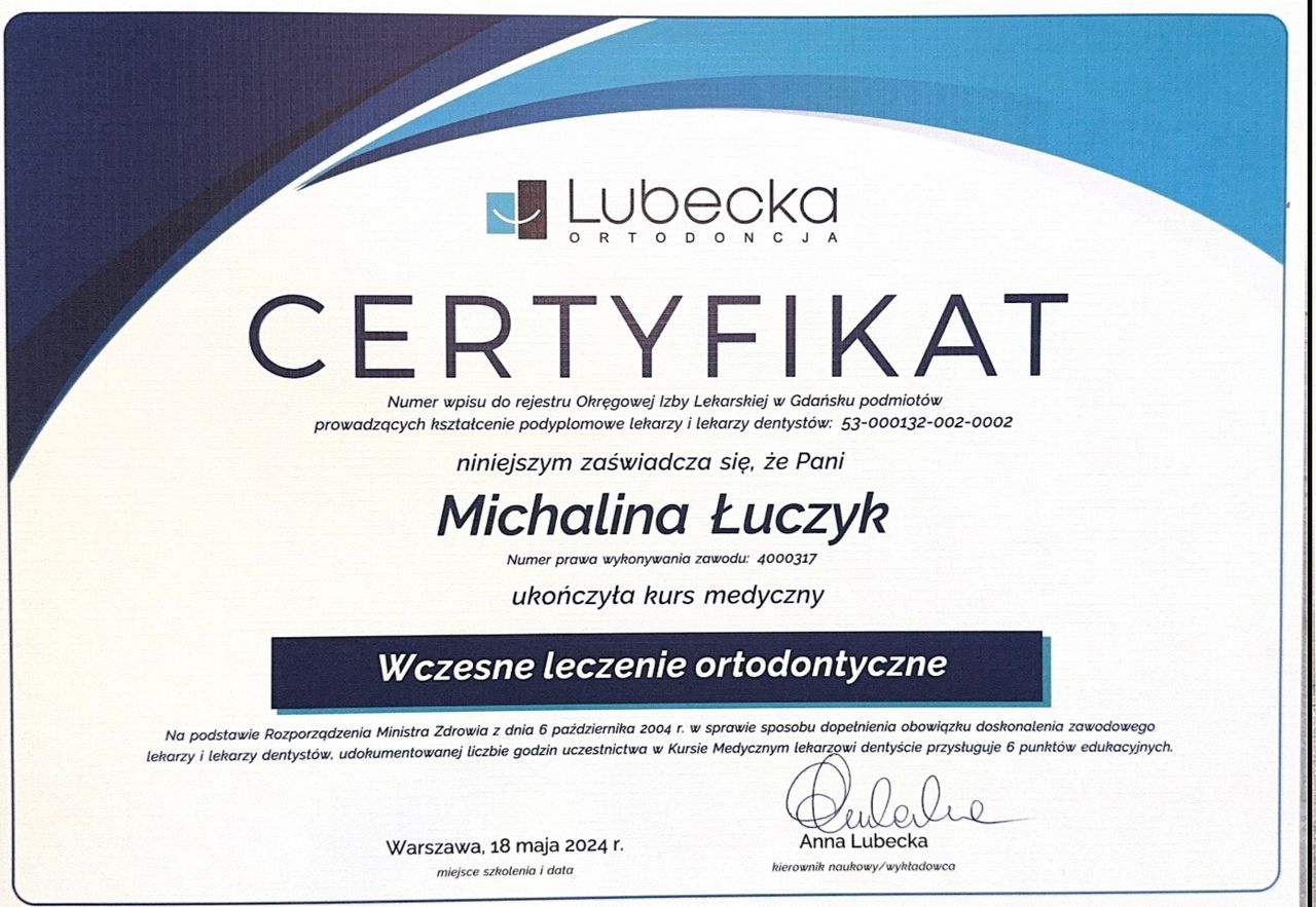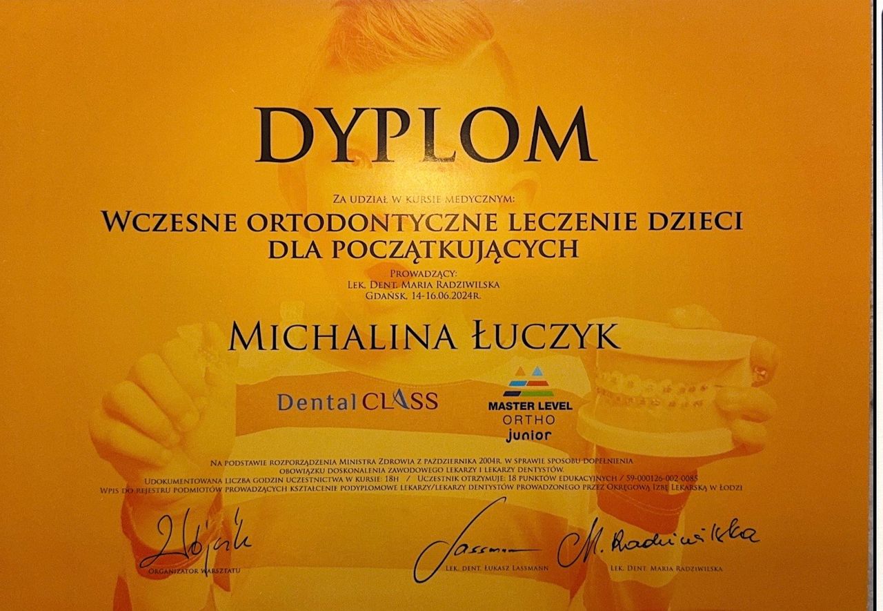 Jestem w trakcie specjalizacji z ortodoncji w NZOZ UDENTE MARTA GALIK.