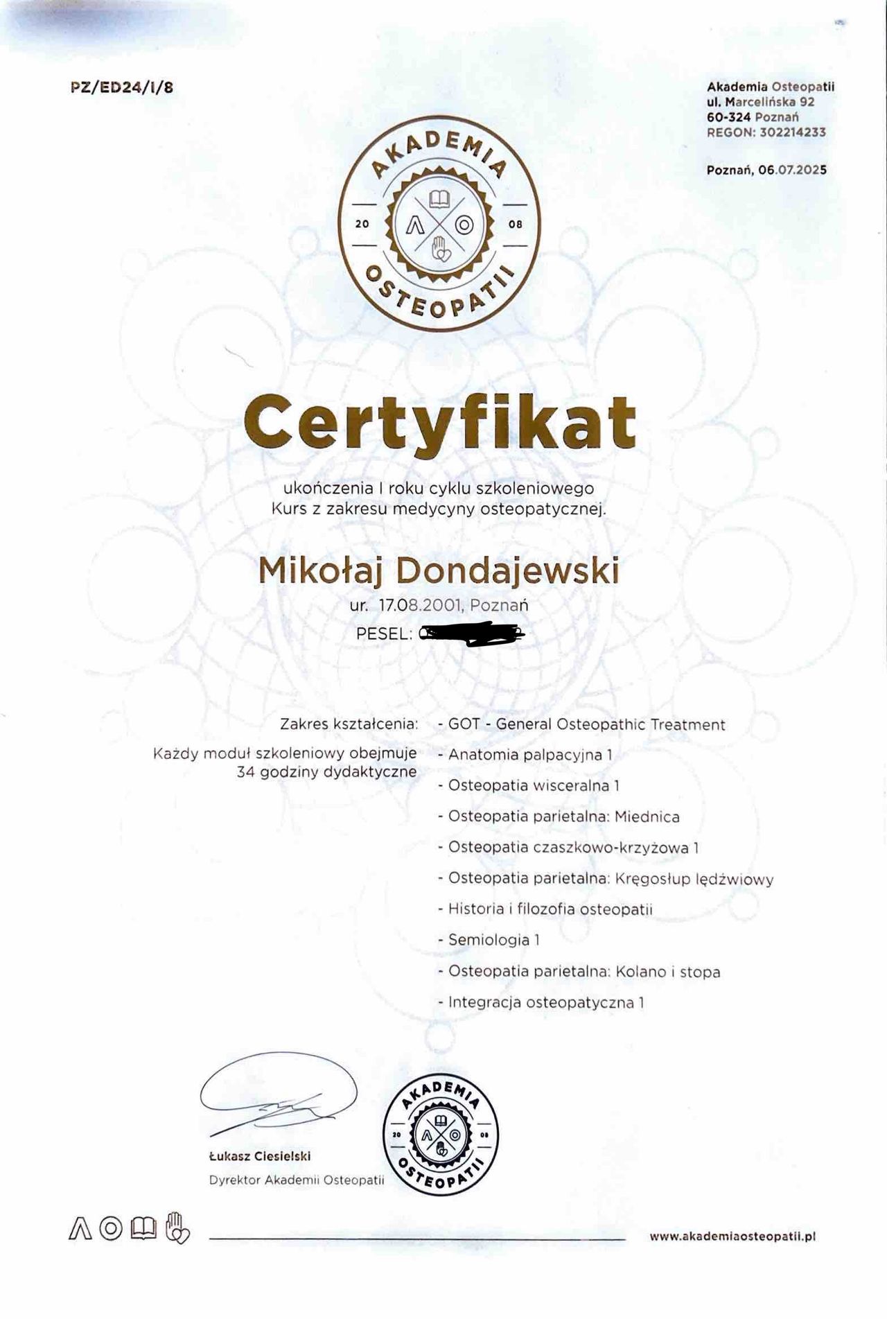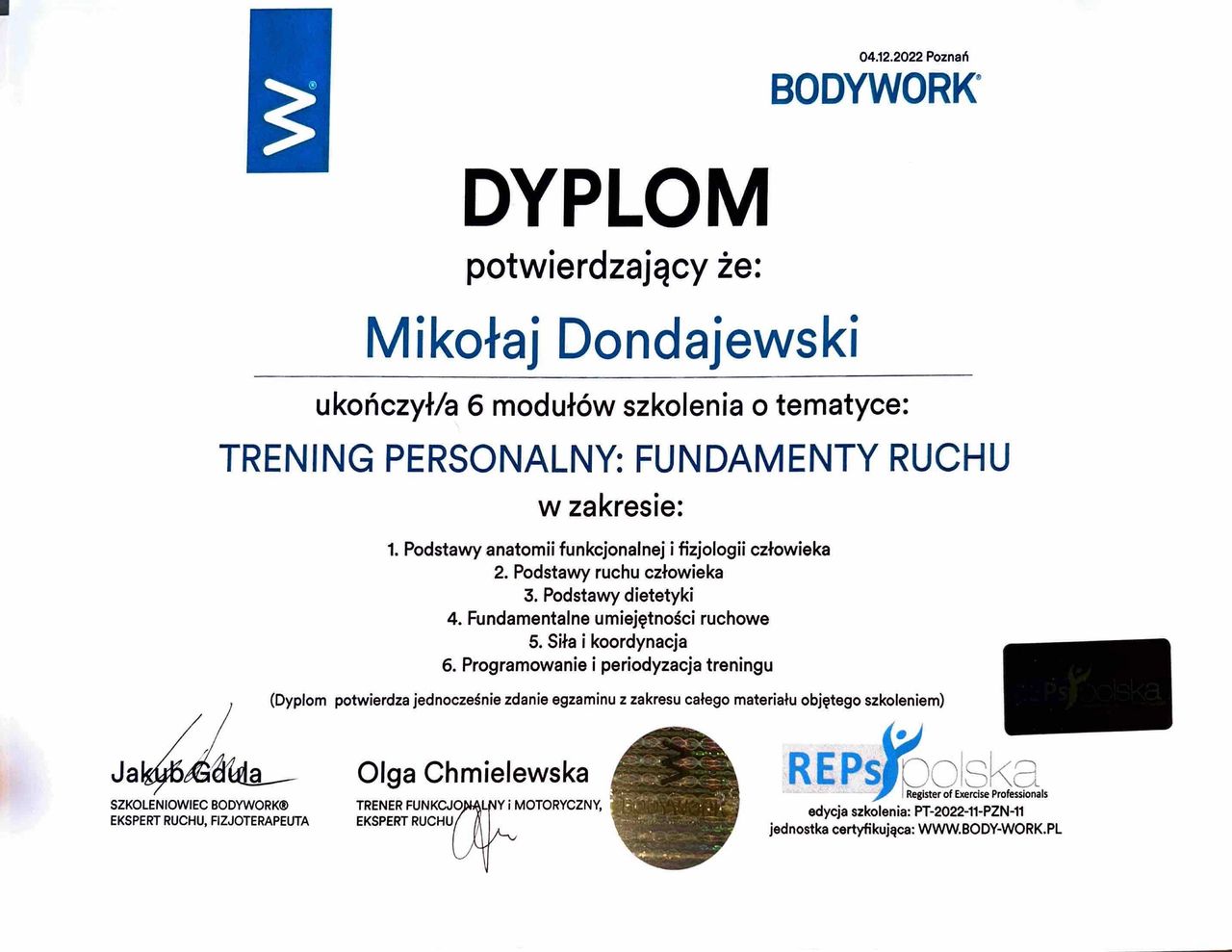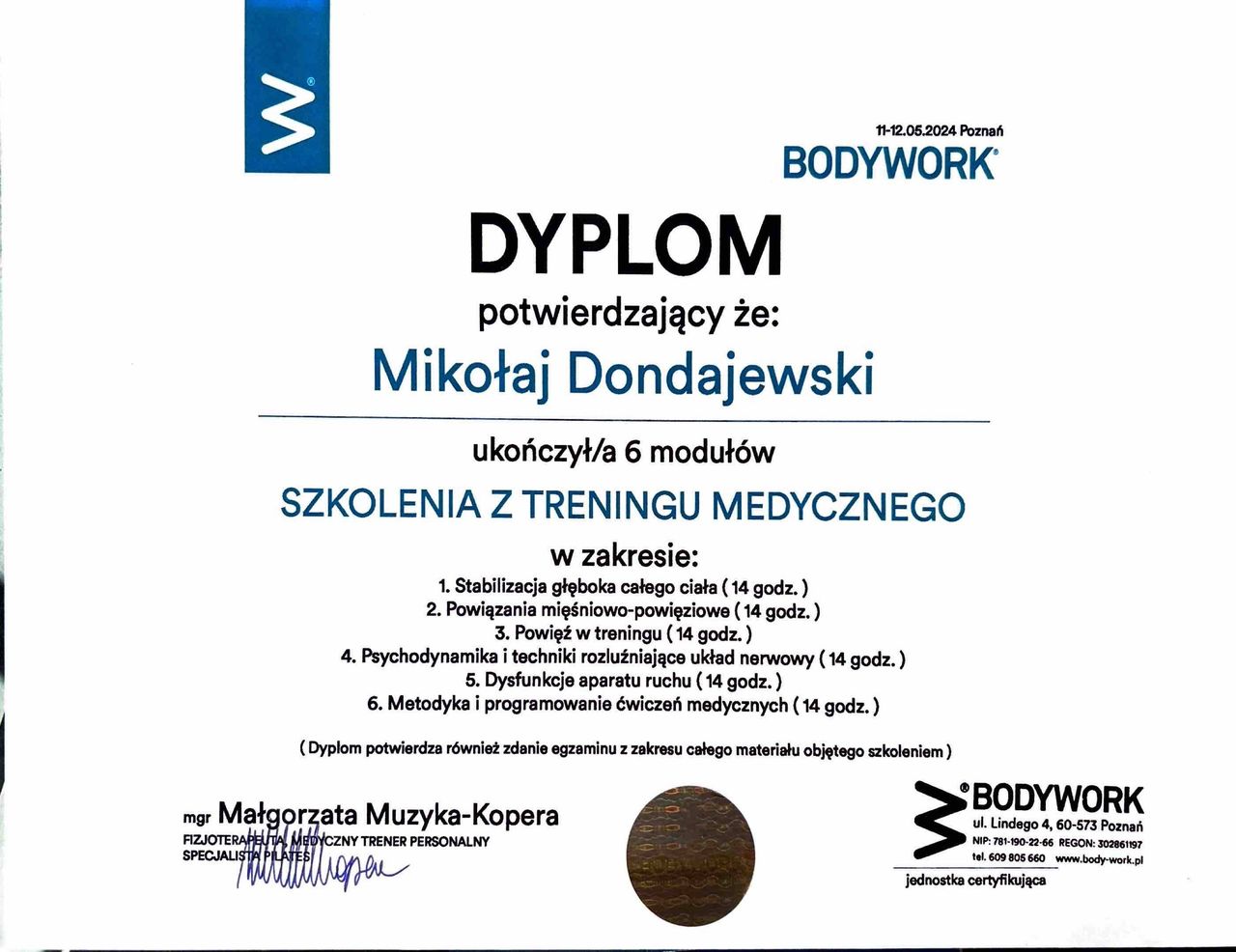 Mam na imię Mikołaj, jestem fizjoterapeutą oraz trenerem medycznym. Ukończyłem studia na kierunku fizjoterapia na Uniwersytecie Medycznym w Poznaniu. Brałem udział w licznych szkoleniach z zakresu fizjoterapii, osteopatii i treningu medycznego, a dziś dalej rozwijam się w Akademii Osteopatii w Poznaniu. Ciało ludzkie jest zbyt złożone żeby skupić się na jednym podejściu, dlatego w gabinecie łączę terapię manualną, trening medyczny i osteopatie w jedno spójne podejście, takie które ma naprawdę sens dla pacjenta. Prywatnie jestem pasjonatem biegów górskich i wspinaczki sportowej.