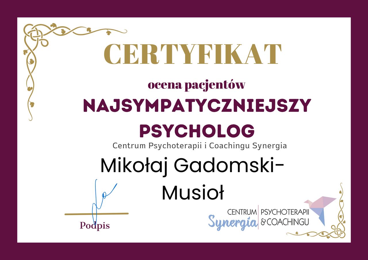 Pan Mikołaj to ciepły i opiekuńczy psycholog. Wszystkie sesje z nim wspominam entuzjastycznie. Nauczył mnie zupełnie innego spojrzenia na świat, już nie tak pełnego lęku jak do tej pory. Jestem mu bardzo wdzięczny.