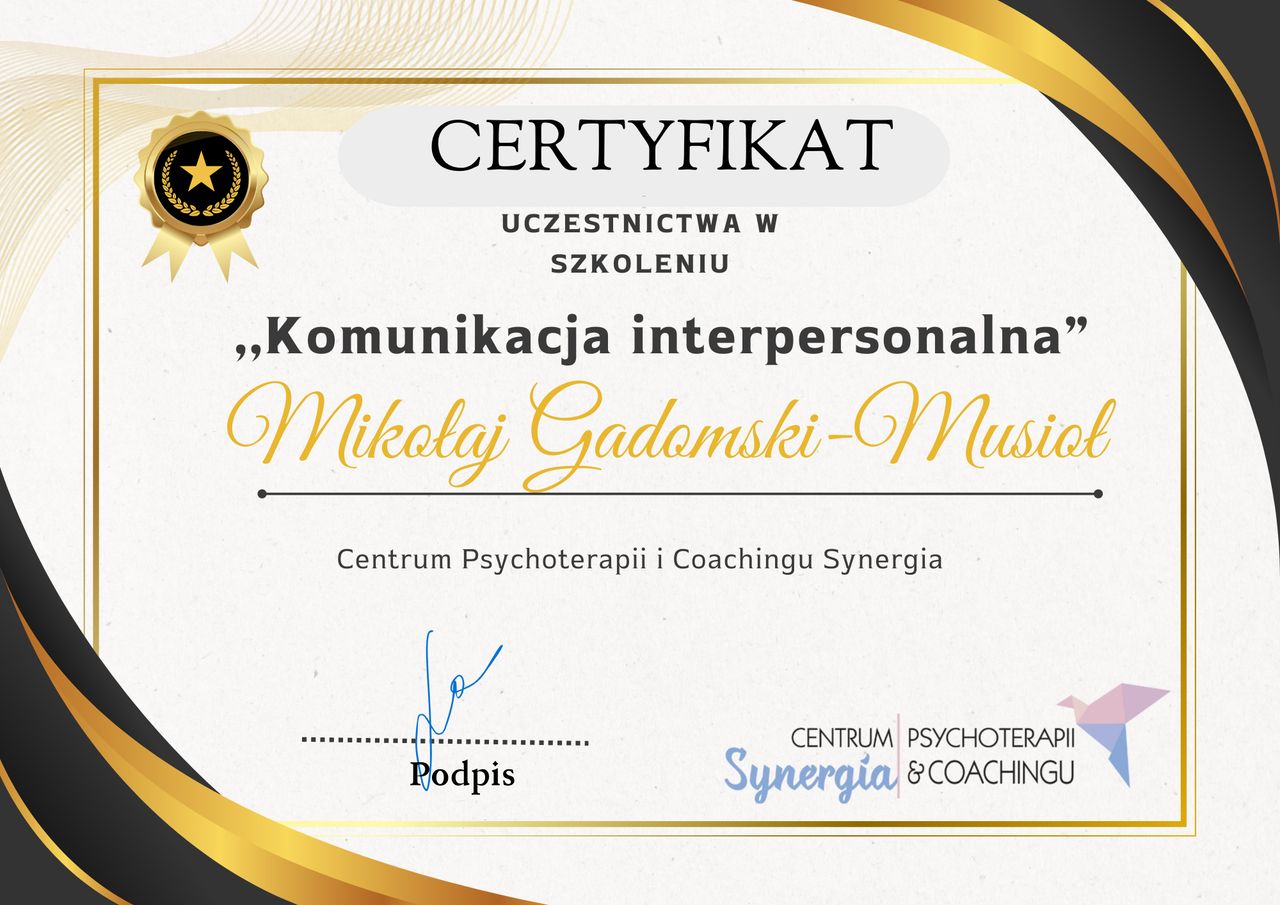 Pan Mikołaj to dobry specjalista, zadaje trafne pytania i potrafi naprowadzić na ważne refleksje. Dzięki pracy z nim zaczęłam lepiej rozumieć siebie i świat wokół, który nie zawsze rozumiałam. Ma świetne podejście do rozmowy — rzeczowe, ale z dużą dozą ciepła. Jestem bardzo wdzięczna za jego pomoc. Zdecydowanie polecam.