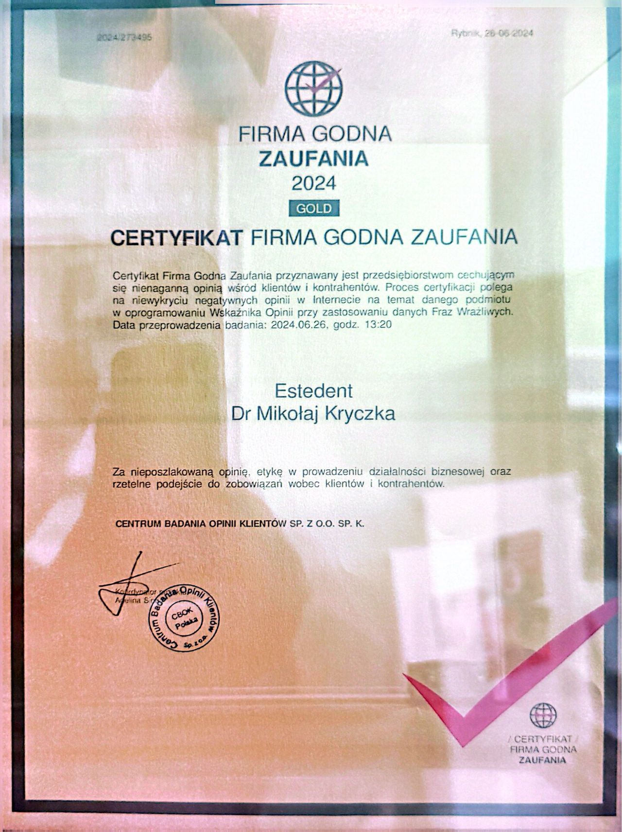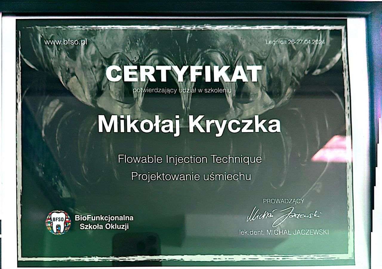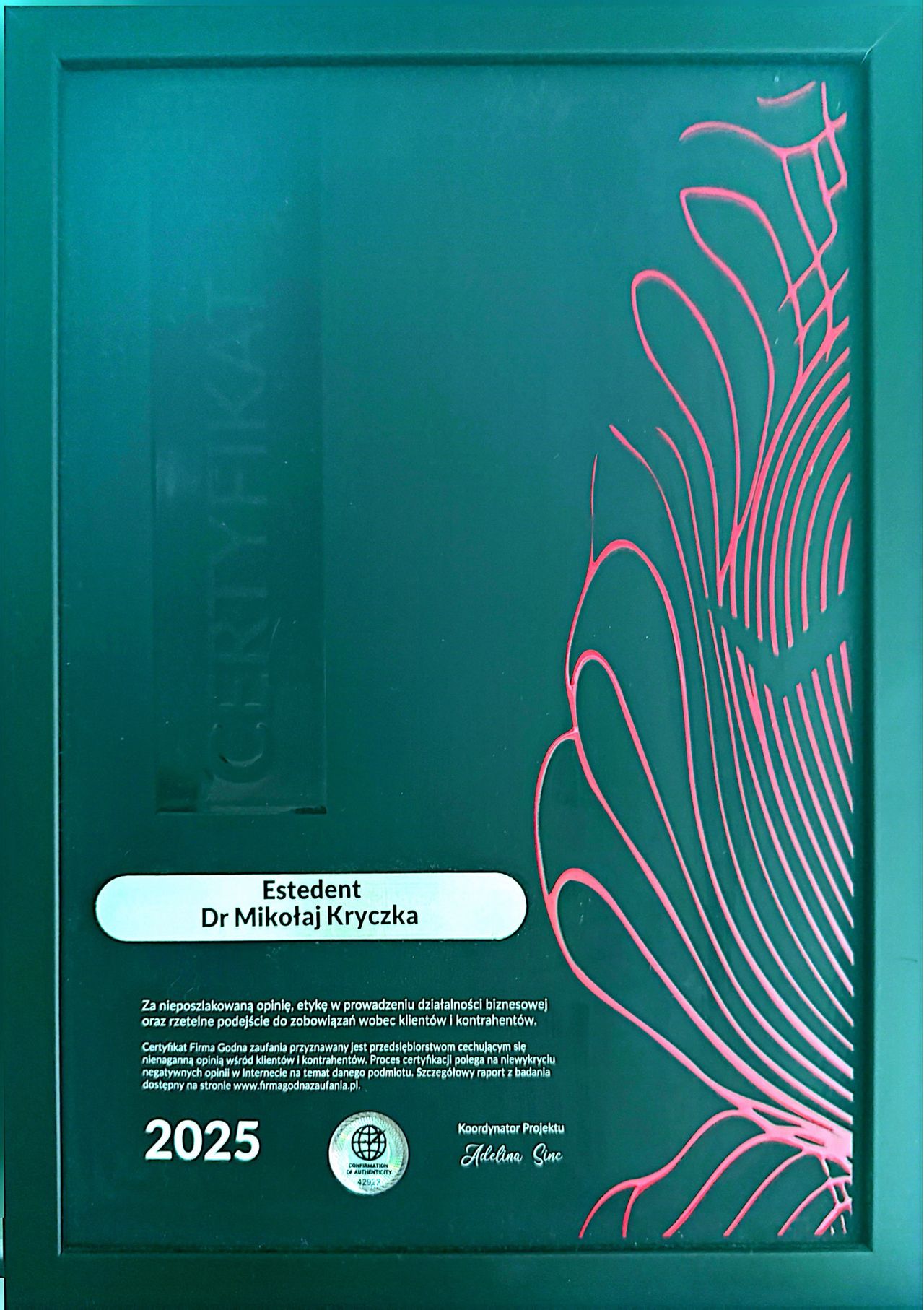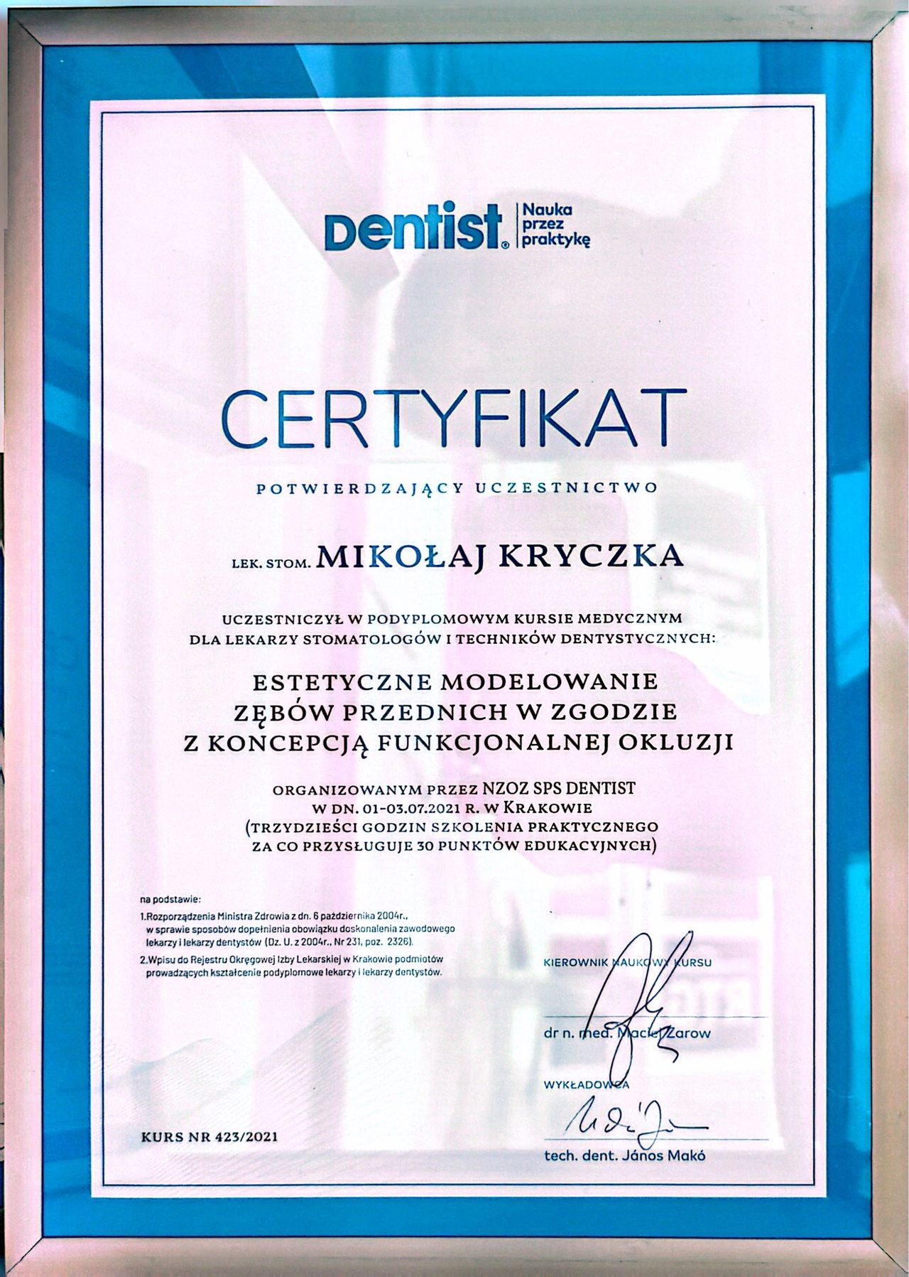 Miałem/miałam przyjemność skorzystać z usług dr Mikołaja Kryczki w zakresie bondingu zębów i mogę z pełnym przekonaniem polecić go jako doskonałego specjalistę. Zabieg został wykonany bardzo precyzyjnie, z dbałością o każdy detal i estetykę uśmiechu. Dr Kryczka dokładnie wyjaśnił cały proces, rozwiał wszelkie wątpliwości i zadbał o komfort na każdym etapie wizyty.