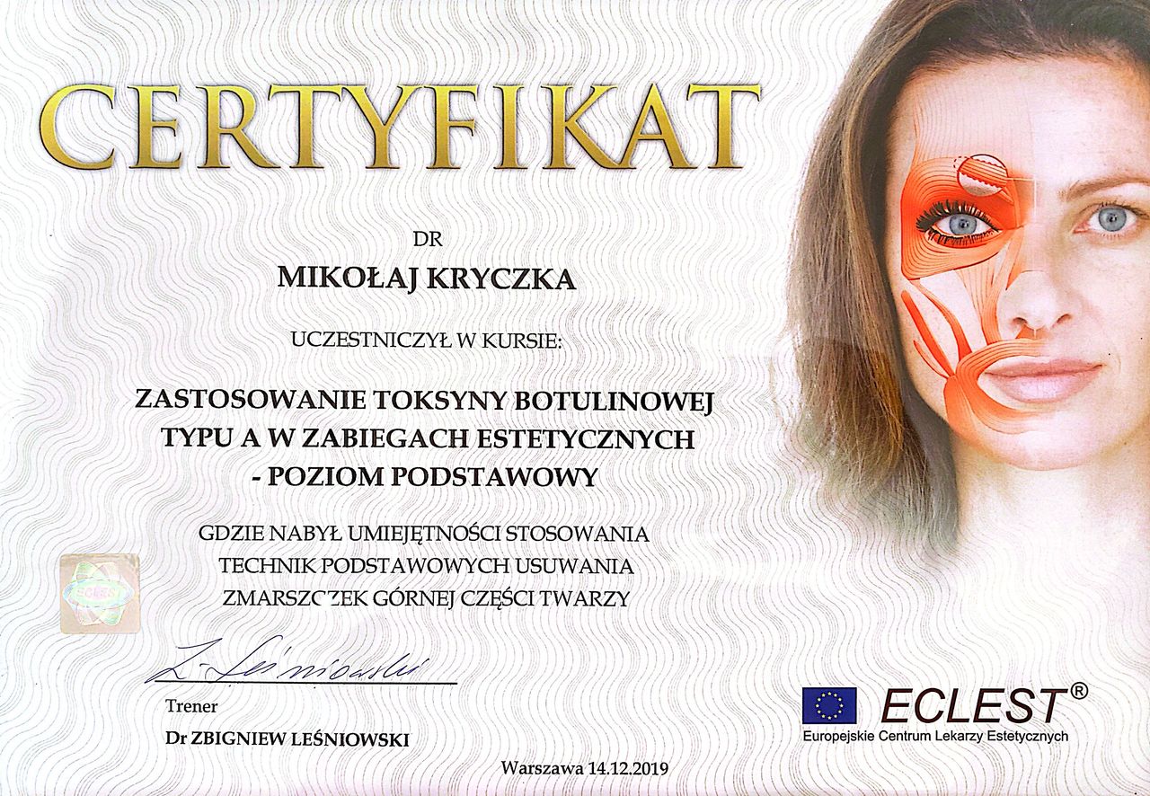 Polecam Doktora z całego serca. Trafiłam do Doktora całkiem przypadkiem ale z polecenia koleżanki, z powodu fatalnych powikłań po innym salonie gdzie zrobiłam botoks. Okazało się, że osoba, która wykonała zabieg zrobiła go bez doświadczenia i wiedzy. Konsekwencje niestety okazały się bardzo dotkliwe dla mnie. Opadło mi czoło i skóra nachodziła na powieki. Było to bardzo dotkliwe, iż powodowało senność i frustrację. Nie wspominając o okropnym efekcie wizualnym, który mnie oszpecił. Nie znalazłam pomocy w żadnym innym salonie, ani u lekarzy. Dopiero Dr. Kryczka zaproponował i wykonał zabieg ratujący moje mięśnie. Jeszcze tego samego dnia wieczorem po zabiegu, moje czoło zaczęło się poruszać a skóra na powiekach w końcu odpuściła, jaka to była wielka ulga !!! Doktor wykazał się ogromną wiedzą i chęcią pomocy. Nie znam więcej osób z tak wielkim sercem, doświadczeniem w wykonywanej pracy i chęci bezinteresownej pomocy. Z czystym sumieniem, polecam !!!