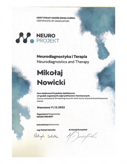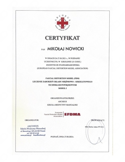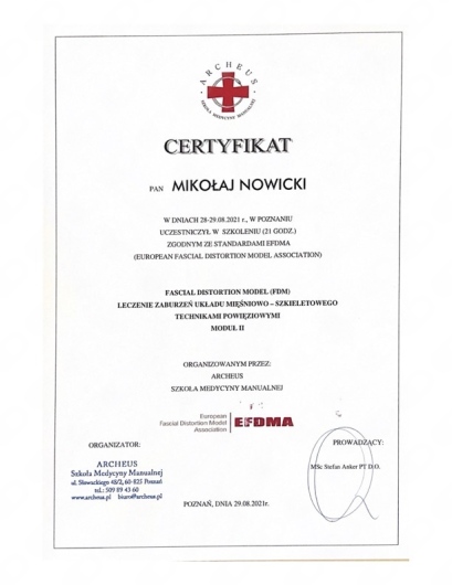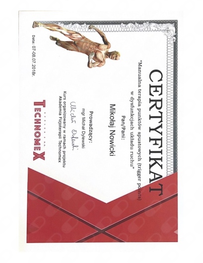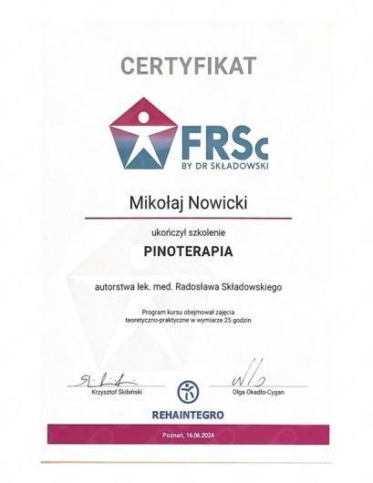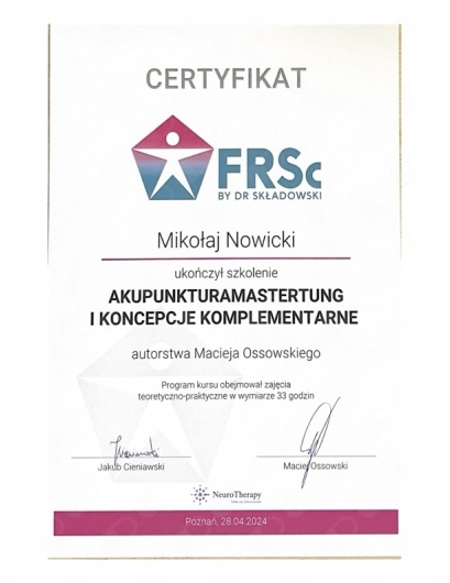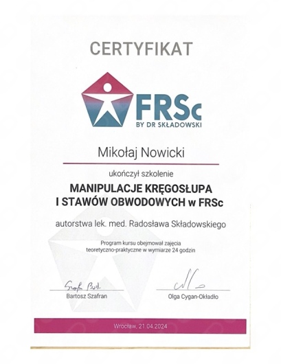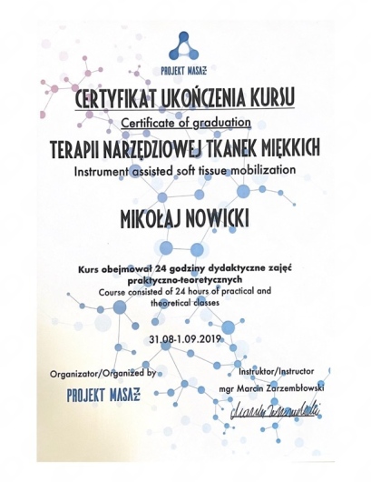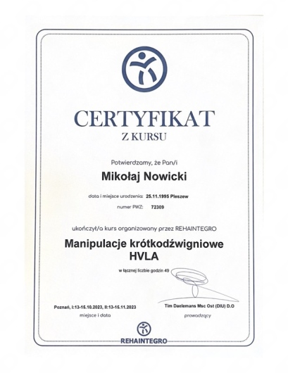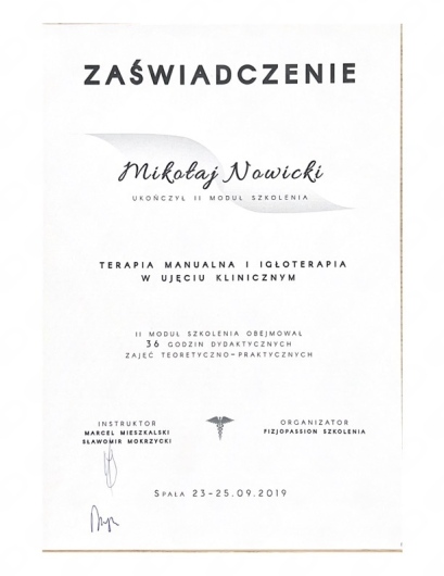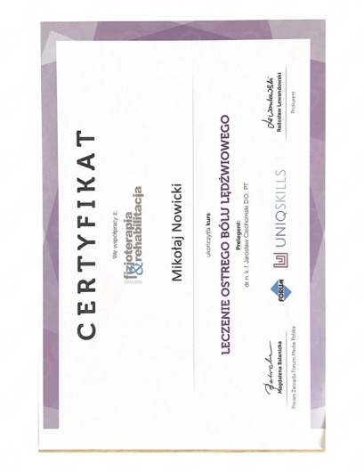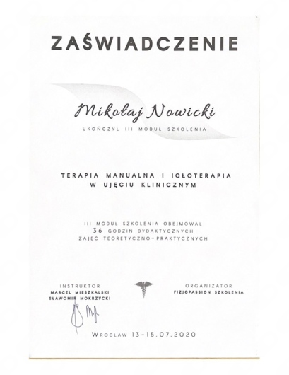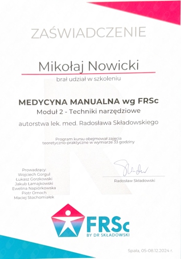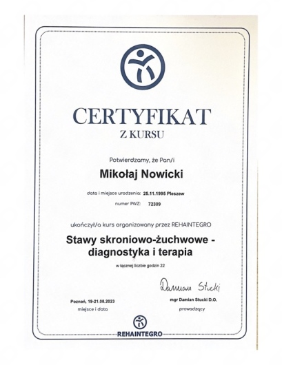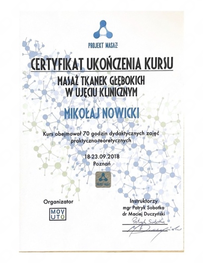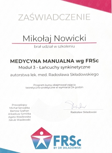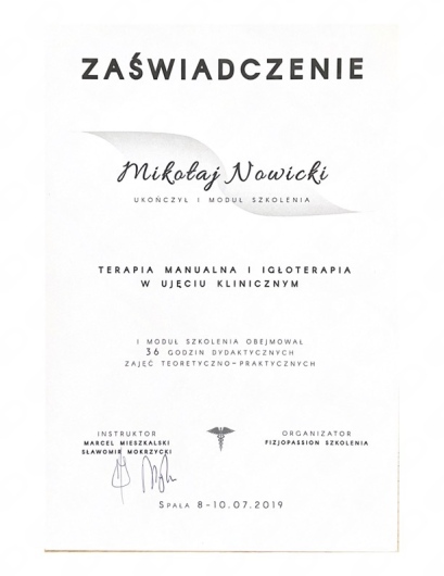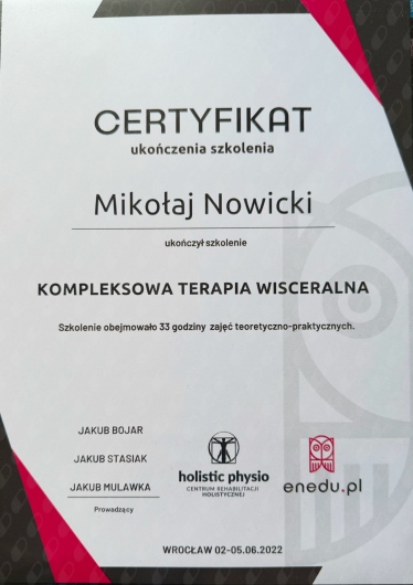 Korzystam z wiedzy i doświadczenia Pana Mikołaja od paru lat, jest bardzo zadowolony z rezultatów zdrowotnych. Prowadzę taki styl życia, że często ulegam kontuzjom i jak dotąd wszystkie diagnozy moich usterek ruchowych Pan Mikołaj rozwiązuje od kilku dni do kilku tygodni. Polecam