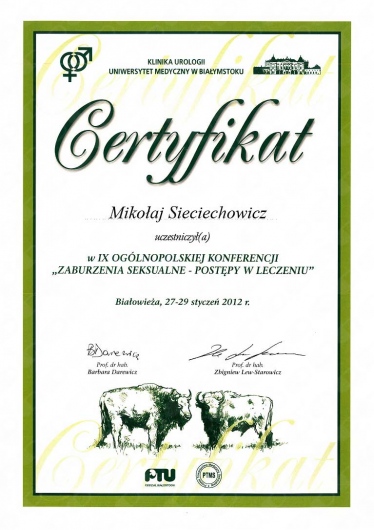 Jaki jest zakres porad oferowanych przez Mikołaj Sieciechowicz?Mikołaj Sieciechowicz to urolog, chirurg. Na podstawie swojego doświadczenia i wykształcenia Mikołaj Sieciechowicz oferuje usługi takie jak: Konsultacja urologiczna + USG, badania bakteriologiczne, badania diagnostyczne, badania hormonalne, badania krwi, badania profilaktyczne, badanie moczu, badanie per rectum, badanie układu moczowego, badanie urodynamiczne.