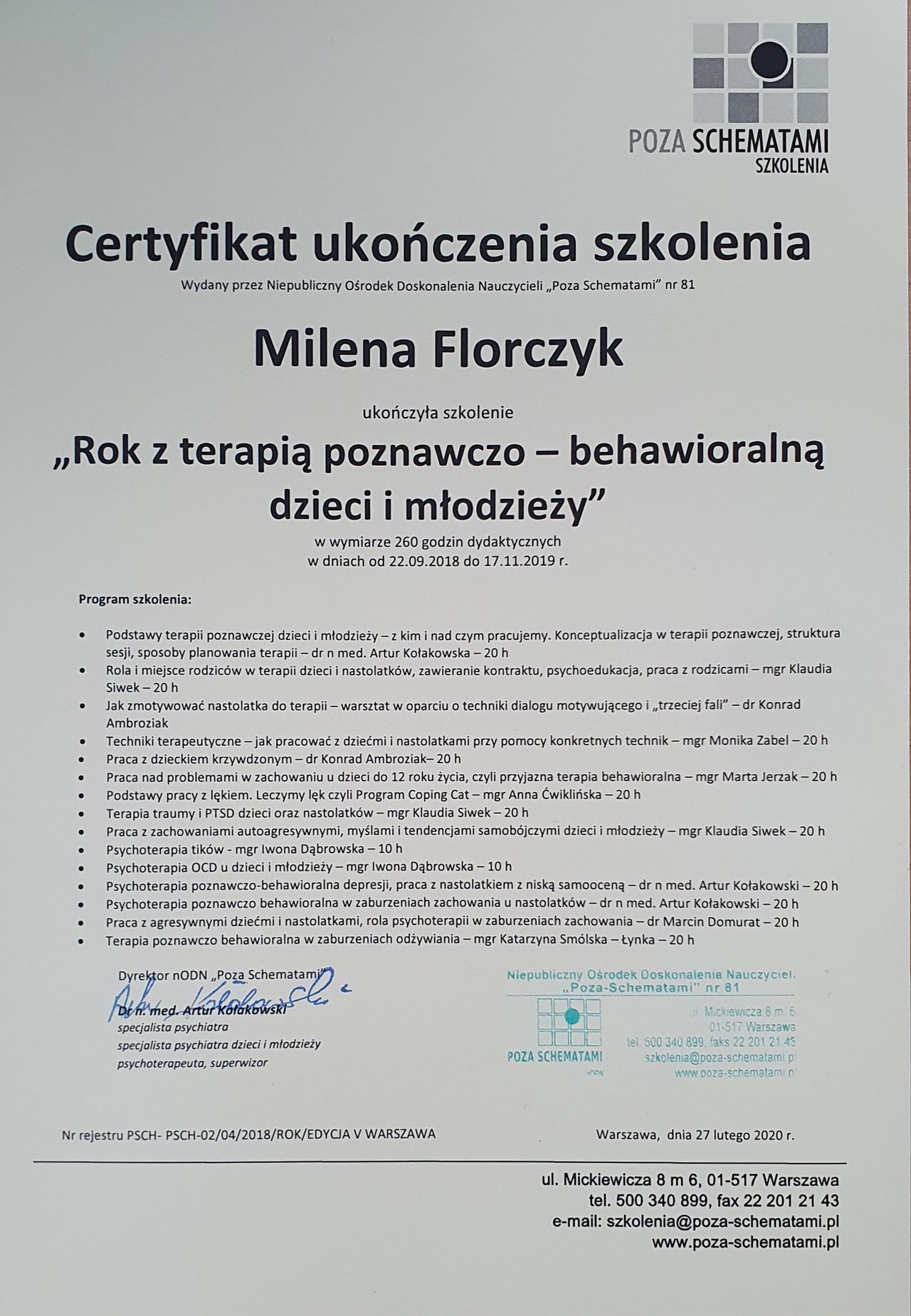 Gdzie Milena Florczyk ma swój gabinet?Milena Florczyk przyjmuje pod adresem: