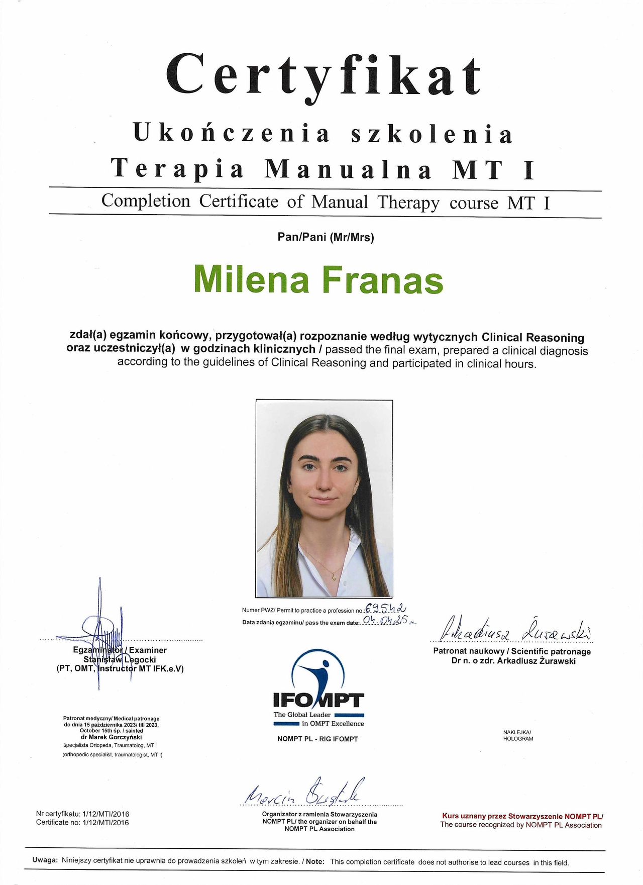 Certyfikowany Terapeuta Manualny MTI wg standardów IFOMPT 12.2022-04.2025r.