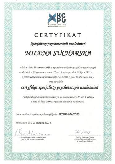 Pani Milena prowadziła mnie przez pierwsze pół roku leczenia uzależnienia w ośrodku na Zgierskiej. Początek mojej drogi do trzeźwości był niezwykle trudny i pełen buntów oraz kryzysów. Pani Milena dzięki ogromnej wiedzy, doświadczeniu, empatii i sile pomogła mi przejść przez ten proces i zacząć złapać życiową równowagę. Buduję teraz dalej swoje trzeźwe życie, kontynuuje oczywiście terapię w ośrodku, ale nigdy nie zapomnę, że szansę na to dostałam właśnie od niej. Jest to terapeuta z powołaniem, talentem, świetnym przygotowaniem merytorycznym i misją pomagania, którą wspaniale realizuje prowadząc pacjentów i dbając o nich od początku do końca. Z tego miejsca jeszcze raz dziękuję i z całego serca polecam współpracę z panią Mileną.