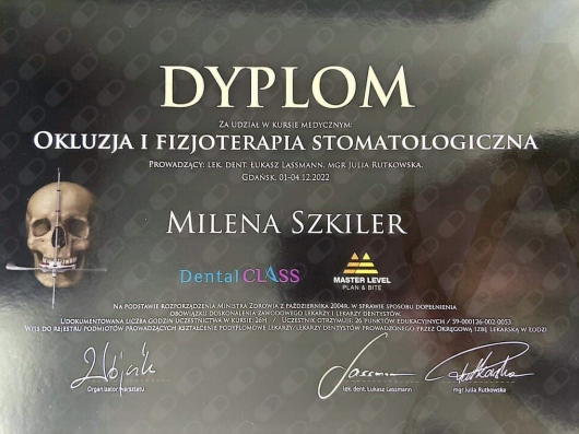 Wykształcenie medyczne zdobyłam, kształcąc się na Pomorskim Uniwersytecie Medycznym w Szczecinie na kierunku lekarsko-dentystycznym. Jestem lekarzem dentystą zajmującym się diagnostyką i leczeniem wad zgryzu u młodzieży oraz dorosłych. Doświadczenie zawodowe przyniosły mi uczestnictwa w licznych kursach i szkoleniach, a także praca w renomowanych gabinetach stomatologicznych.