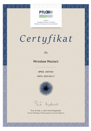 Czy Mirosław Maziarz przyjmuje online, bez konieczności pojawiania się w placówce?Nie, w tym momencie Mirosław Maziarz nie oferuje konsultacji online.