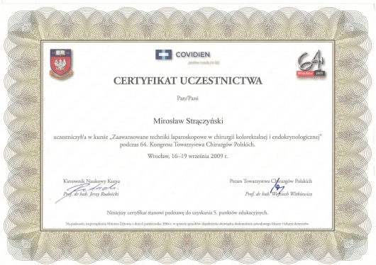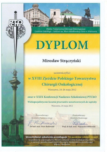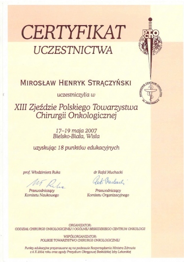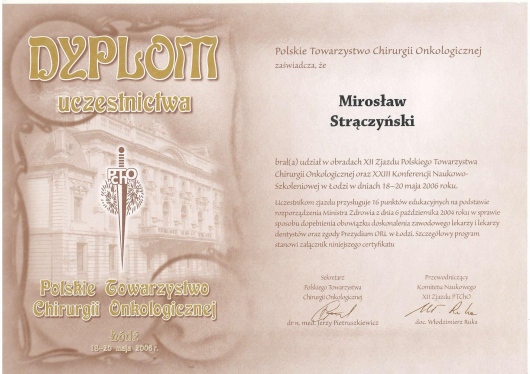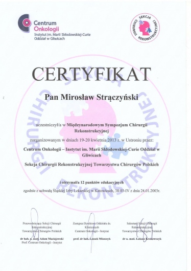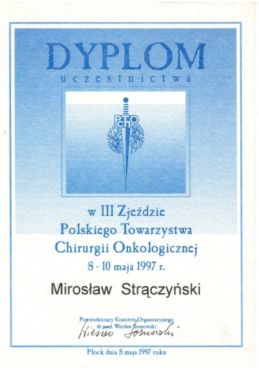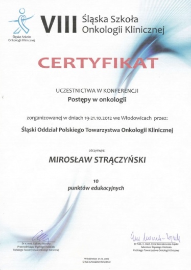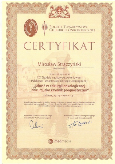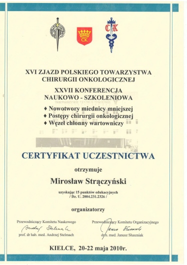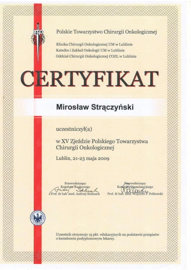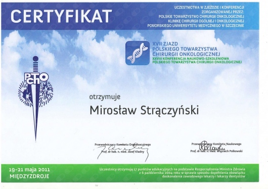 Jest wszechstronnie wykształconym onkologiem (posiada również specjalizację z chirurgii ogólnej) stale podnoszącym swoje kwalifikacje na kursach i stażach krajowych oraz zagranicznych. Przede wszystkim dr M. Strączyński jest empatycznym lekarzem nastawionym na pomoc i szybkie rozwiązywanie problemów chorych. Cechuje się szerokim kompleksowym podejściem do leczenia chorób nowotworowych.