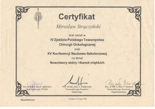 O wielu lat dr M.Strączyński wykonuje dermatoskopię, która pozwala na wczesną diagnostykę czerniaka i istotnie zwiększa szansę chorego na wyleczenia. Chętnie uczestniczy w akcjach społecznych propagujących wczesną diagnostykę nowotworów, a w szczególności czerniaka skóry.