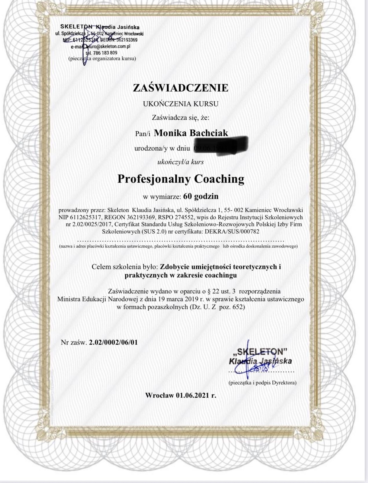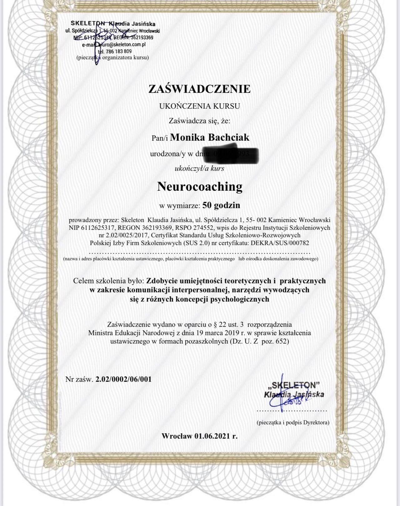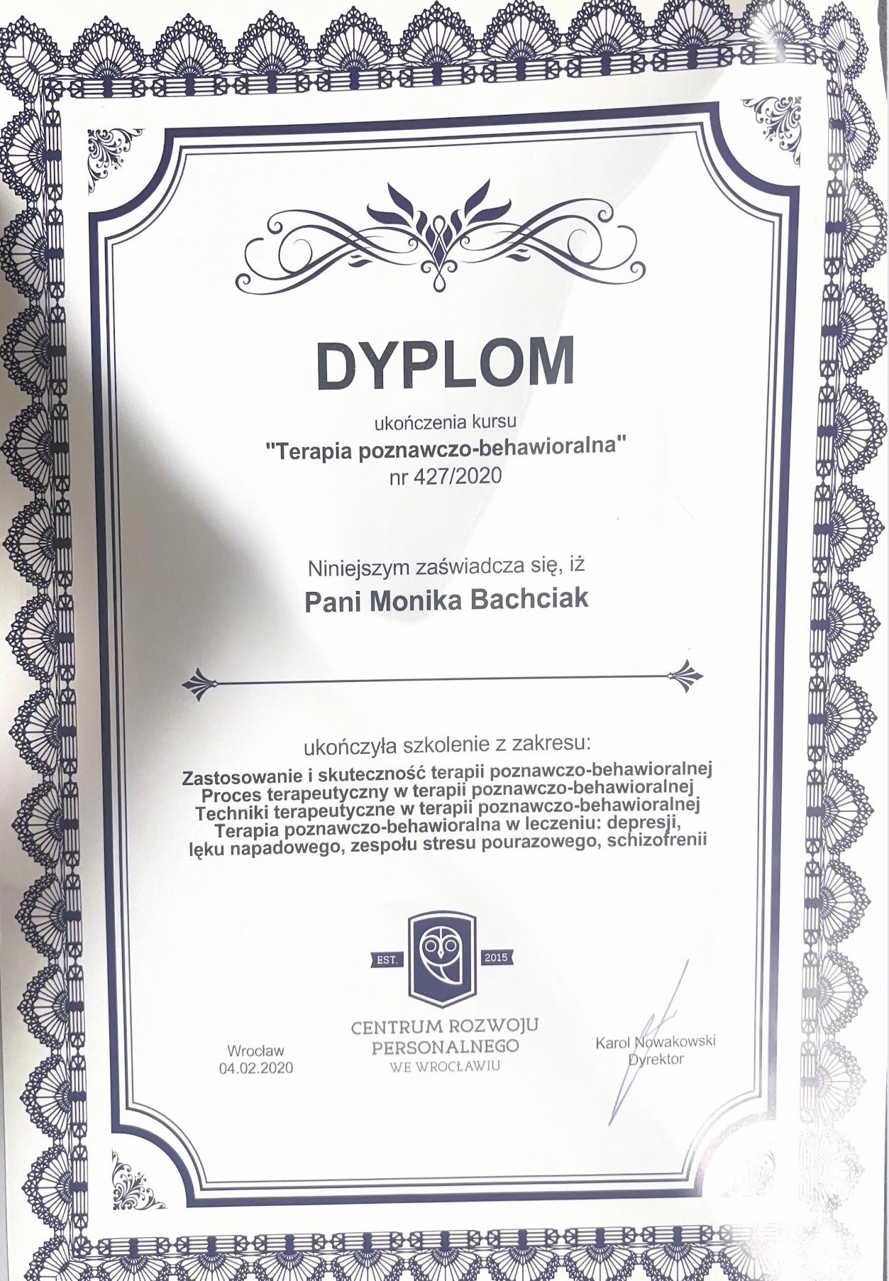 Stale poszerzam swoje kompetencje, uczestnicząc w szkoleniach oraz specjalistycznych kursach, a w niedalekiej przyszłości planuję rozpocząć naukę w szkole psychoterapii.