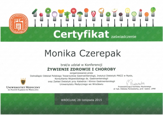Ponadto jestem absolwentką Uniwersytetu Przyrodniczego we Wrocławiu, gdzie studiowałam Żywienie Człowieka w Profilaktyce Zdrowotnej. Wiedzę z zakresu mikrobiologii medycznej zdobywałam podczas pięcioletniego kursu specjalistycznego na Uniwersytecie Medycznym w Poznaniu. Ukończyłam również kierunek Analityka Medyczna na Collegium Medicum w Bydgoszczy oraz Biologię na Uniwersytecie Wrocławskim.