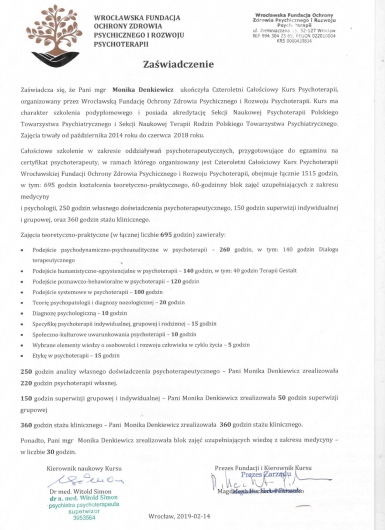 • Monika Denkiewicz PoMOC Prywatna Praktyka Psychoterapeutyczna • psychoterapia indywidualna •