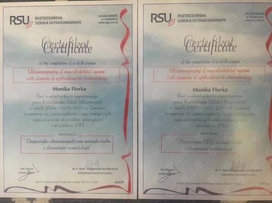 Stale doskonalę swoje umiejętności, uczestnicząc w szkoleniach i konferencjach naukowych w kraju oraz za granicą. Jestem członkinią Polskiego Towarzystwa Mięśni, Ścięgien i Więzadeł.