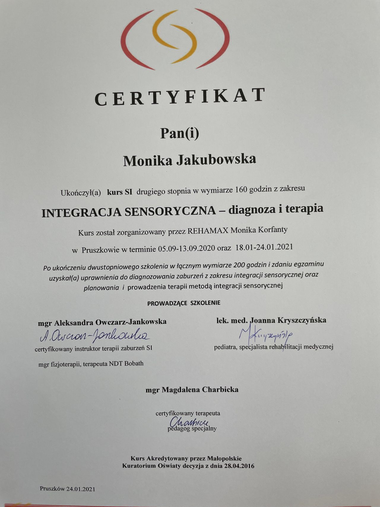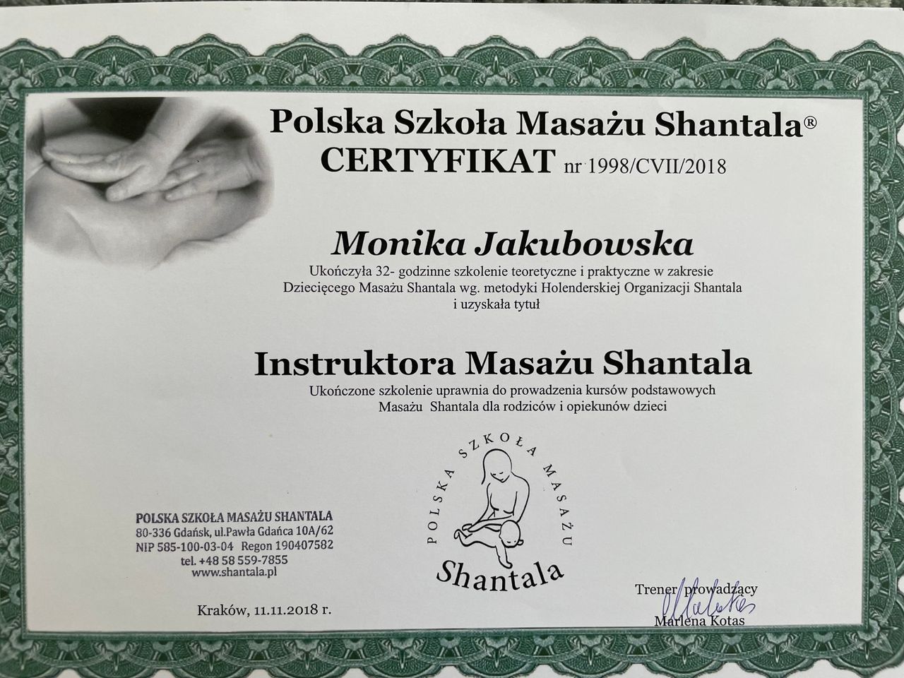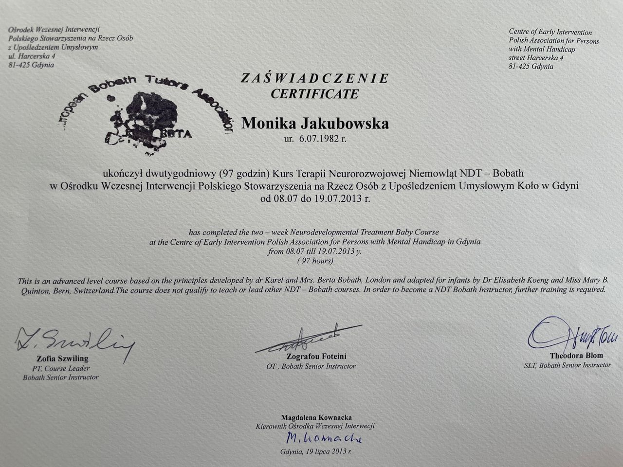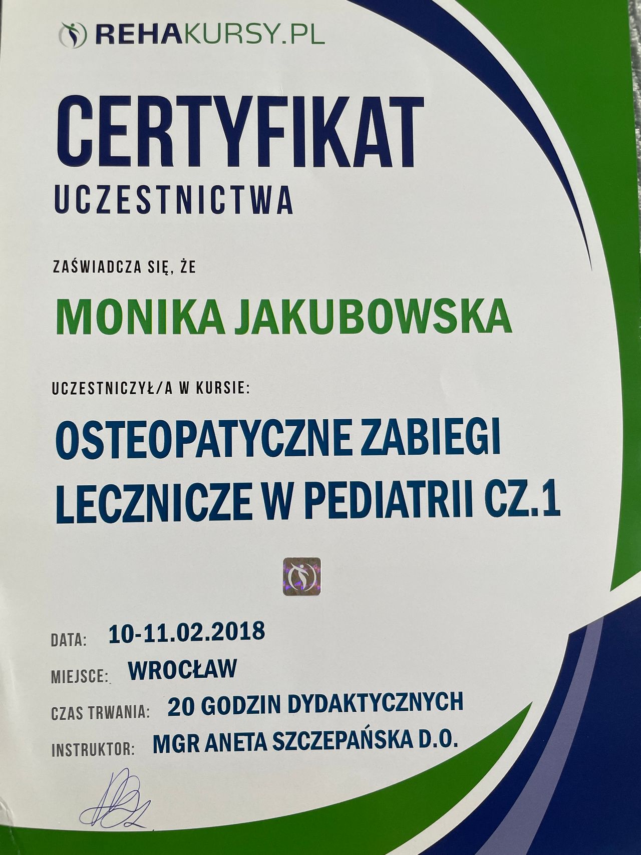 Absolwentka ICOM Mediolan - Szkoła Osteopatii Pediatrycznej