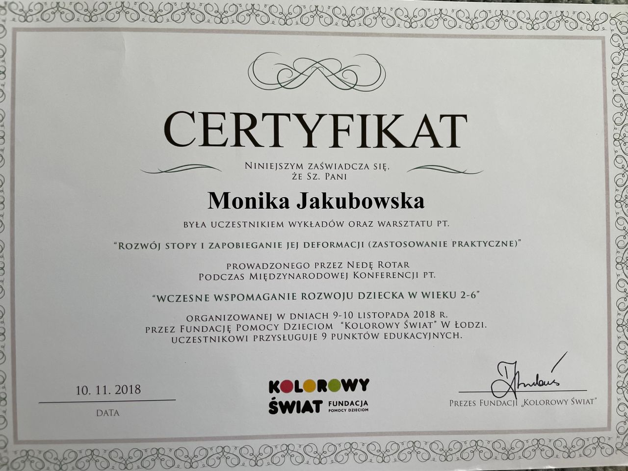 Specjalista fizjoterapii, osteopata dziecięcy.