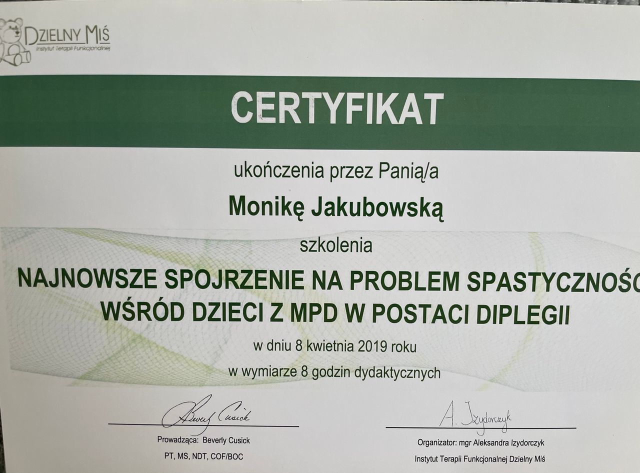 Jaki jest zakres porad oferowanych przez Monika Jakubowska?Monika Jakubowska to fizjoterapeuta, fizjoterapeuta dziecięcy. Na podstawie swojego doświadczenia i wykształcenia Monika Jakubowska oferuje usługi takie jak: konsultacja fizjoterapeutyczna, terapia NDT - bobath baby, Masaż Shantala niemowląt i małych dzieci, Terapia manualna, terapia skolioz dzieci, Terapia tkanek miękkich, badania diagnostyczne, terapia mięśniowo-powięziowa, fizjoterapia niemowląt, ćwiczenia.