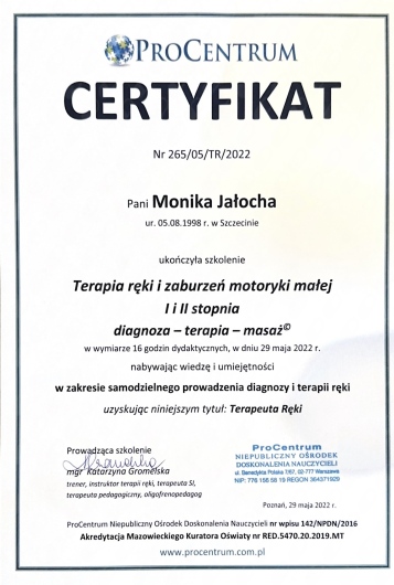 Jeszcze raz dziękuję za towarzyszenie mi w trakcie terapii. Wsparcie, które otrzymałam pozwoliło mi rozwinąć skrzydła. Dzięki zaangażowaniu i bardzo dobrze dobranym ćwiczeniom umiem sobie radzić z problemami, które wcześniej mnie przerastały. Dziękuję przede wszystkim za udowodnienie mi, że to była moja walka, którą dzięki skutecznej pomocy wygrałam. I dziękuję za pozostawienie we mnie poczucia, że gdybym potrzebowała pomocy jestem u Was zawsze mile widziana