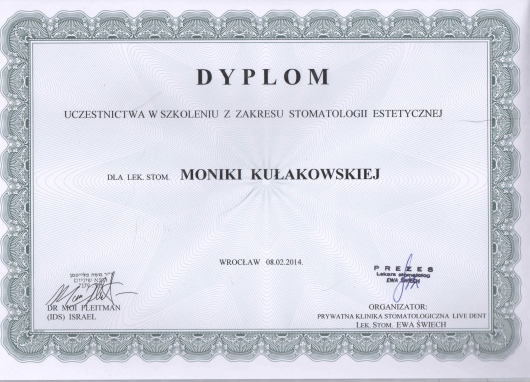 Pani Monika jest bardzo dobrym specjalistą. Punktualna i dokładna. Przed rozpoczęciem leczenia wszystko wyjaśnia i sprawdza. Mam za sobą leczenie kanałowe, wymianę wypełnień oraz zabiegi usunięcia ósemek (w tym jednej zatrzymanej) i jestem bardzo zadowolona z leczenia. Czuję się lepiej, moje zęby są zdrowsze i ładniejsze. Dodatkowo dzięki zdrowszym zębom poprawiła się kondycja mojej skóry twarzy i szyi. Do gabinetu przychodzę również na dokładną higienizację.