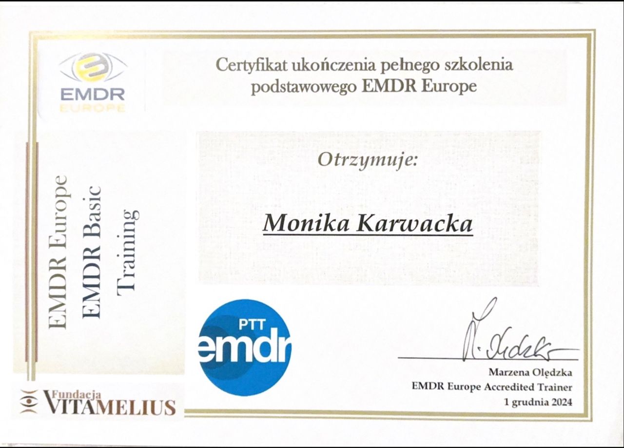 Jaki jest zakres porad oferowanych przez Monika Karwacka?Monika Karwacka to psycholog. Na podstawie swojego doświadczenia i wykształcenia Monika Karwacka oferuje usługi takie jak: Konsultacja psychologiczna, psychoterapia indywidualna, Terapia EMDR, interwencja kryzysowa, poradnictwo psychologiczne, konsultacja online.