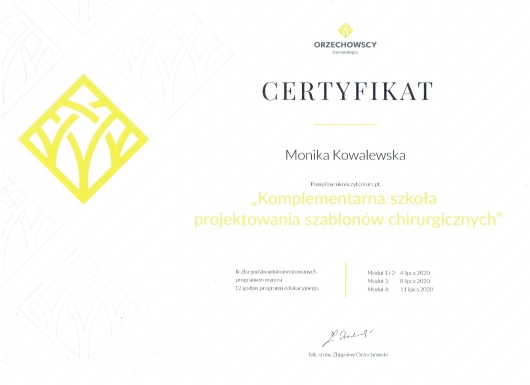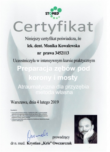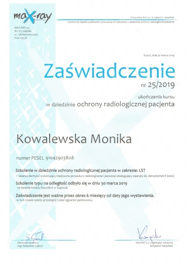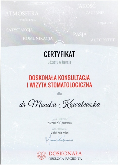 Każdemu mogę gorąco polecić wizyty u Pani Moniki. Obsługa pacjenta jest na najwyższym poziomie z jakim nigdy wcześniej się nie spotkałem. Pani Doktor jest bardzo miła oraz zaangażowana w dobro pacjenta. Doświadczenie, staranność oraz fachowość widoczna jest na każdym kroku bez znaczenia na rodzaj dolegliwości. Rekonstrukcja ukruszonej jedynki u innego stomatologa trwała ponad miesiąc, w momencie, kiedy ukruszyła mi się druga, Pani Monika załatwiła sprawę w ciągu jednej wizyty, bez zbędnego przeciągania. Innym razem z powodu martwego zęba musiałem mieć wykonane leczenie kanałowe, tutaj również bez zaskoczeń. Leczenie zostało przeprowadzone bardzo sprawie, bezboleśnie oraz trwale. W każdym przypadku leczenie odbyło się bez powikłań oraz innych problemów. Pani Monika jest lekarzem do którego mam pełne zaufanie, ponieważ wiem, że każda usługa zostanie wykonana z należytą starannością. Z tego powodu każdemu, komu doskwiera ząb, mogę w 100% polecić wizytę u Pani Moniki.