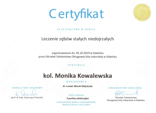Pani Monika uratowała mi dolna 6ke, podjęła się zrobienia zabiegu powtórnego leczenia kanałowego pomimo iz większość dentystów z którymi konsultowałem skazywało ten ząb wyłącznie na ekstakcje. Bardzo polecam.