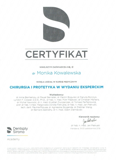 Jaki jest zakres porad oferowanych przez Monika Kowalewska?Monika Kowalewska to stomatolog, chirurg stomatologiczny, protetyk stomatologiczny. Na podstawie swojego doświadczenia i wykształcenia Monika Kowalewska oferuje usługi takie jak: chirurgia stomatologiczna, leczenie kanałowe, badania stomatologiczne, Wybielanie zębów, Konsultacja stomatologiczna, Stomatologia zachowawcza, profilaktyka próchnicy, stomatologia estetyczna, konsultacja implantologiczna, Konsultacja periodontologiczna.