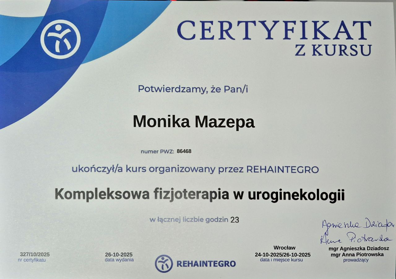 Jeśli to jest Twoja pierwsza wizyta proszę wybrać usługę "konsultacja fizjoterapeutyczna (pierwsza wizyta)". Dzięki temu będę mogła dokładnie przeprowadzić wywiad, badanie oraz odpowiednią terapię.