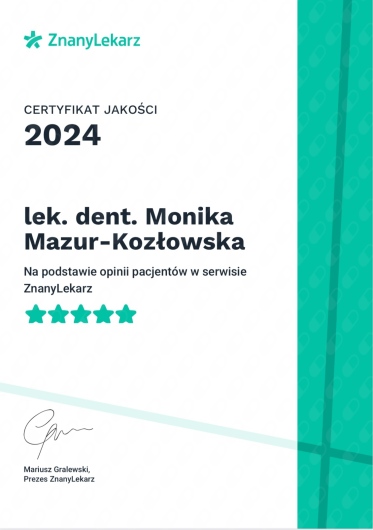 Bardzo jestem zadowolona. Czuje sie zaopiekowana przez doktor Monikę, a przez to jestem bardzo spokojna i nie czuje strachu przed wizytą. Pani Monika jest osobą niesamowicie empatyczna, troszczącą sie o pacjenta. Takiego stomatologa dlugo szukałam.