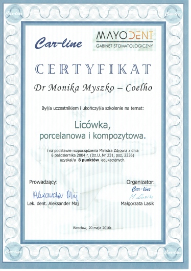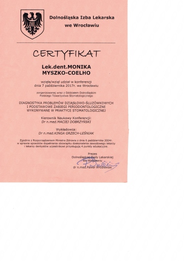 Jaki jest zakres porad oferowanych przez Monika Myszko-Coelho?Monika Myszko-Coelho to stomatolog, chirurg stomatologiczny. Na podstawie swojego doświadczenia i wykształcenia Monika Myszko-Coelho oferuje usługi takie jak: konsultacja protetyczna, Konsultacja periodontologiczna, konsultacja chirurga stomatologa, Konsultacja stomatologiczna pierwsza + zdjęcie pantomograficzne.