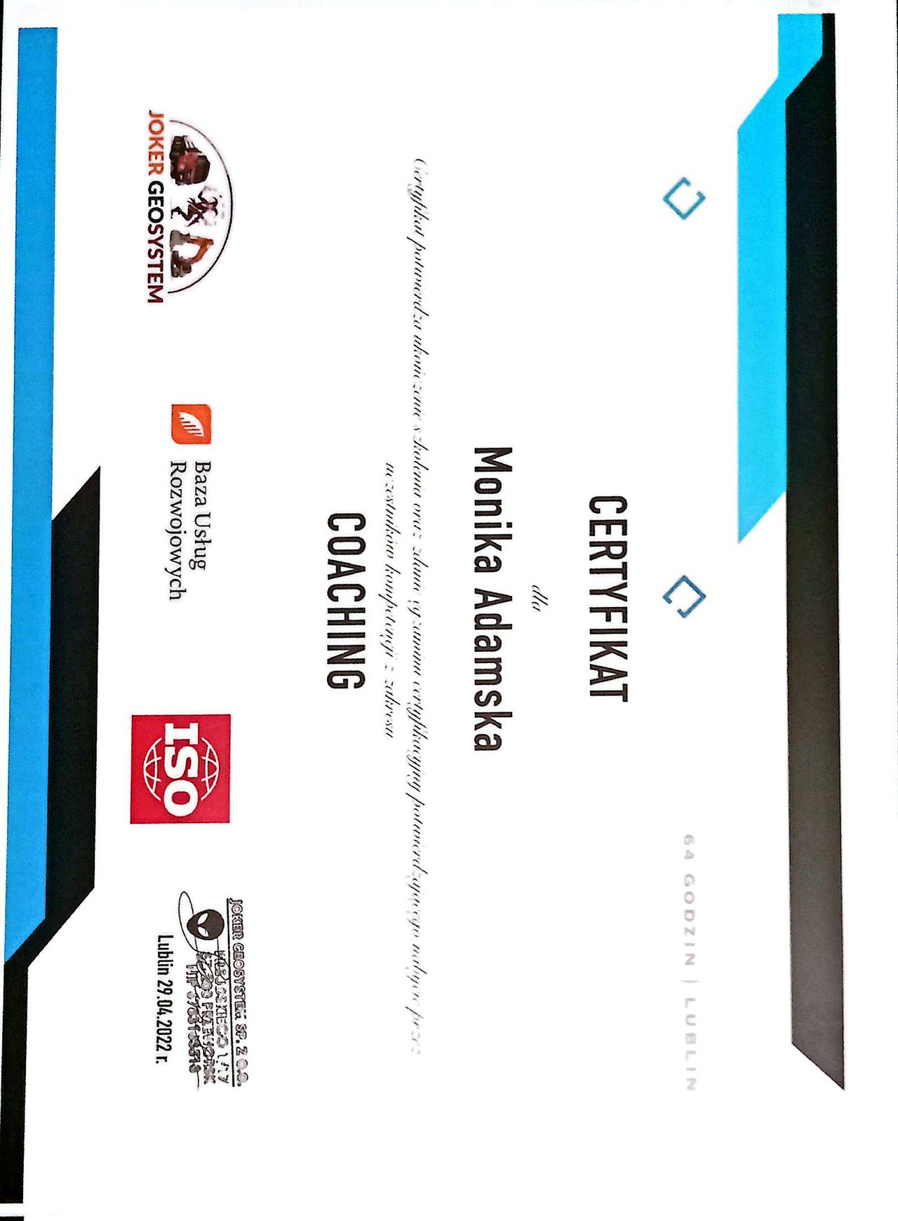 Ukończyłam jednolite studia magisterskie na Katolickim Uniwersytecie Lubelskim z specjalnością wspierania jakości życia. Dodatkowo jestem interwentem kryzysowym i coachem.