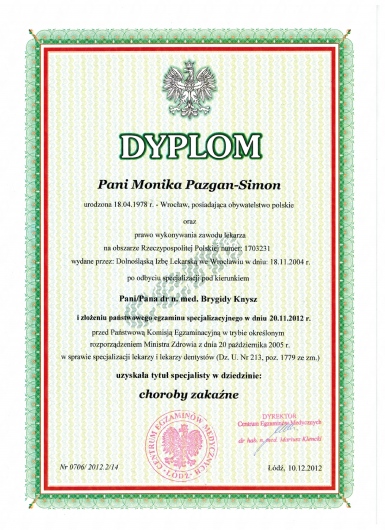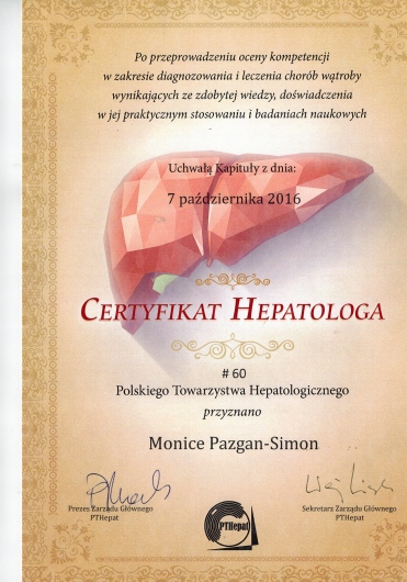 Jaki jest zakres porad oferowanych przez Monika Pazgan-Simonn?Monika Pazgan-Simonn to hepatolog, lekarz chorób zakaźnych. Na podstawie swojego doświadczenia i wykształcenia Monika Pazgan-Simonn oferuje usługi takie jak: konsultacja hepatologiczna, konsultacja hepatologiczna (pierwsza wizyta), konsultacja lekarza chorób zakaźnych, konsultacja lekarza medycyny podróży.